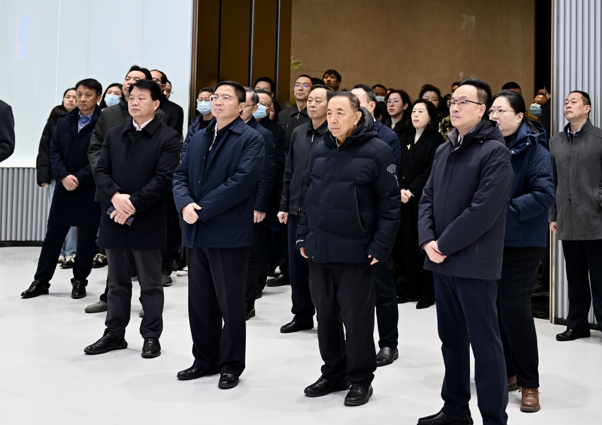 会前,与会嘉宾参观高德红外展示中心,实地观摩了集团在红外芯片、脑机接口等领域的核心技术与研发成果,并详细了解了相关技术在工业及民用等方面的多元应用场景与系列化产品。