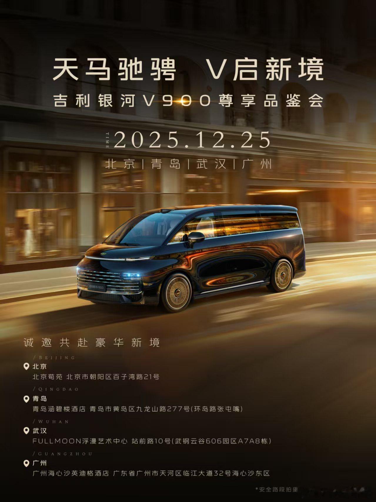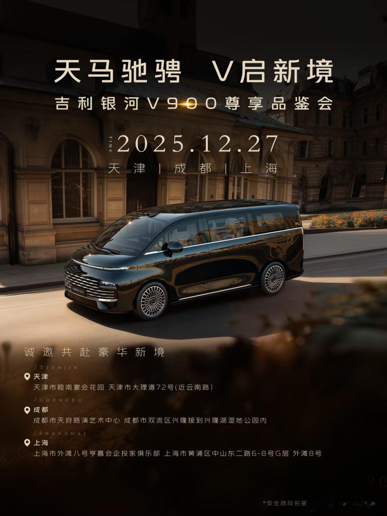 天马驰骋 V启新境吉利银河V900 尊享品鉴会正式启幕!12.25-12.28 | 十城巡礼 诚邀共赴豪华新境吉利汽车 杭州