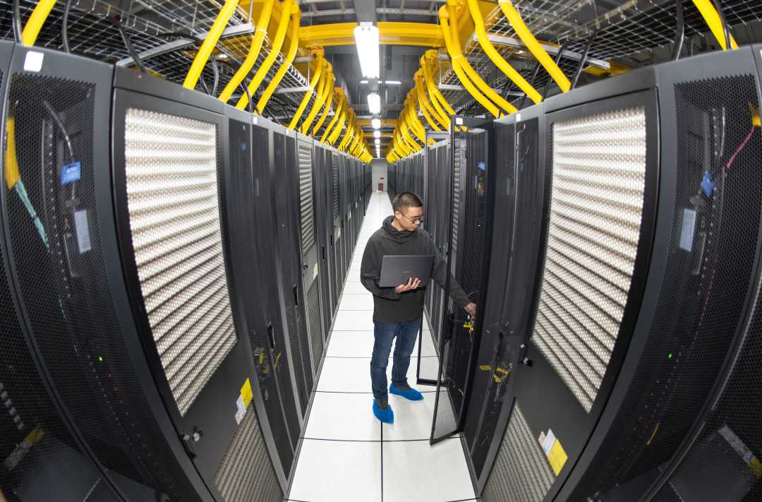 12月24日,位于新疆昌吉回族自治州昌吉市的新疆国际融合算力中心,工作人员在IDC机房内进行巡检。“十四五”期间,昌吉着力打造全疆绿色算力示范区,全面建设辐射中亚地区的数据枢纽平台。截至目前,高性能智算规模达8300P,服务于智慧城市、智慧医疗、智慧农业、跨境物流、公共安全等多个应用场景。