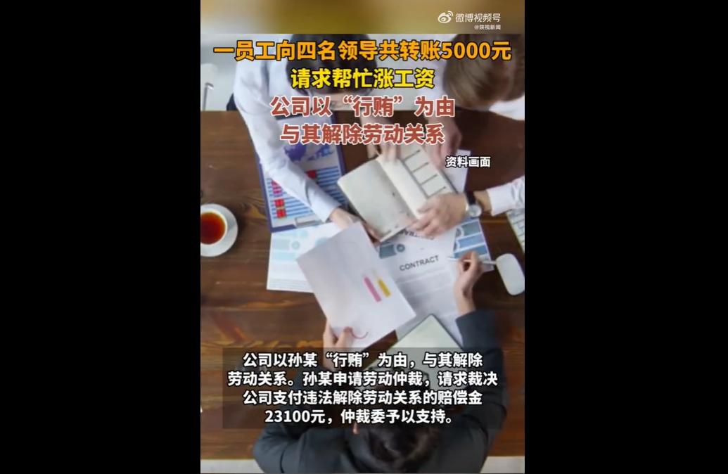 安徽某物业公司员工孙某月薪3850元,分4次给4位领导转5000元求加薪,被公司