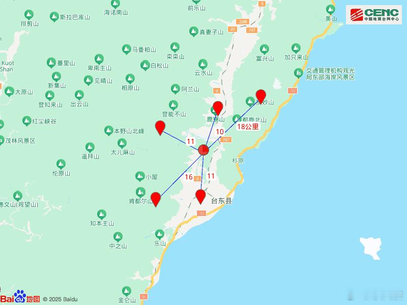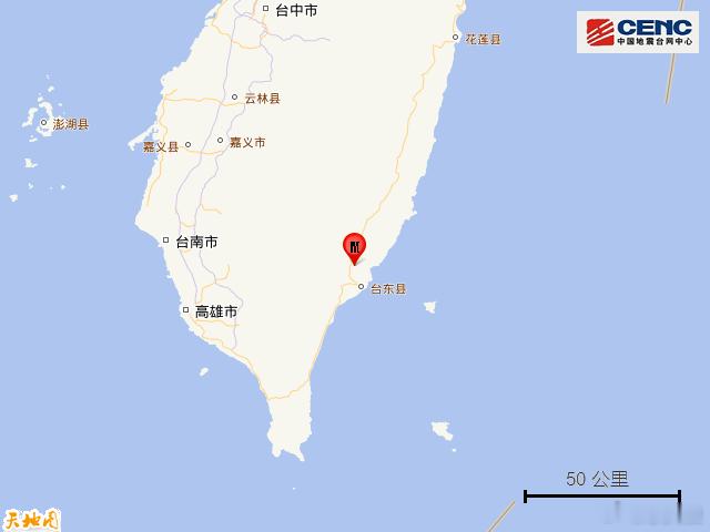 台湾台东5.8级地震 据中国地震台网正式测定,12月24日17时47分在台湾台东县发生5.8级地震,震源深度10公里,震中位于北纬22.86度,东经121.12度。周边县城:震中距鹿野乡10公里、距台东市11公里、距延平乡11公里、距卑南乡16公里、距东河乡18公里,距台东县12公里,距台北市247公里。