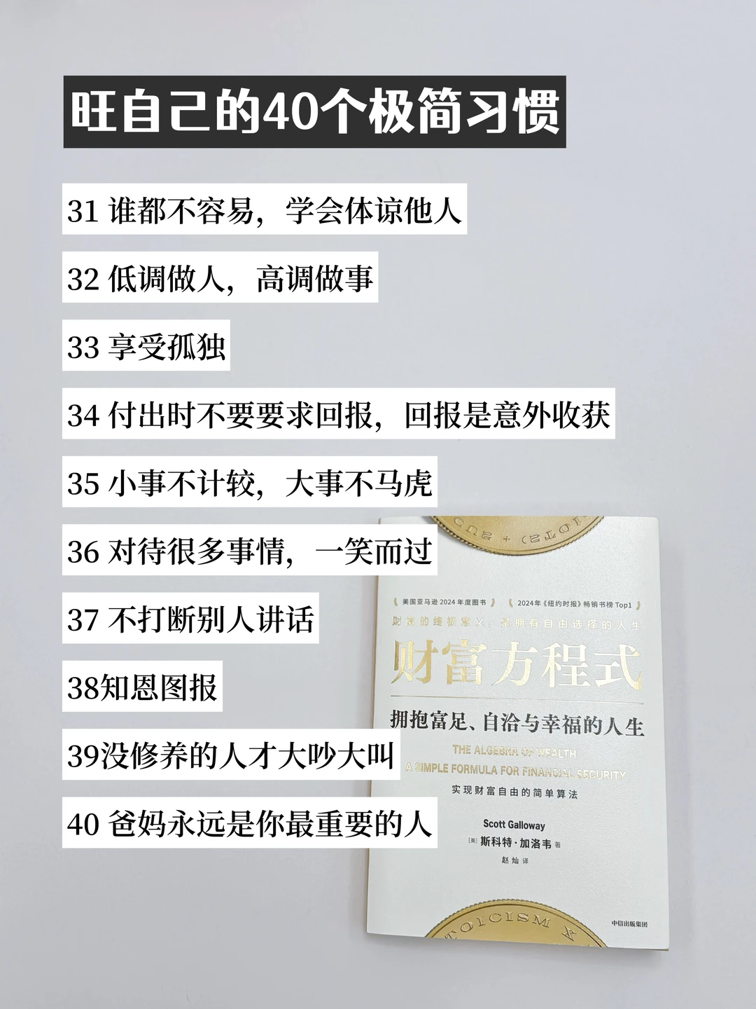 大家好,这里是努力搞钱,存到百万就退休的小猫👋 “生活简单就迷人,人心简单就幸福,学会简单,其实就是不简单。”今天给大家分享40个极简习惯