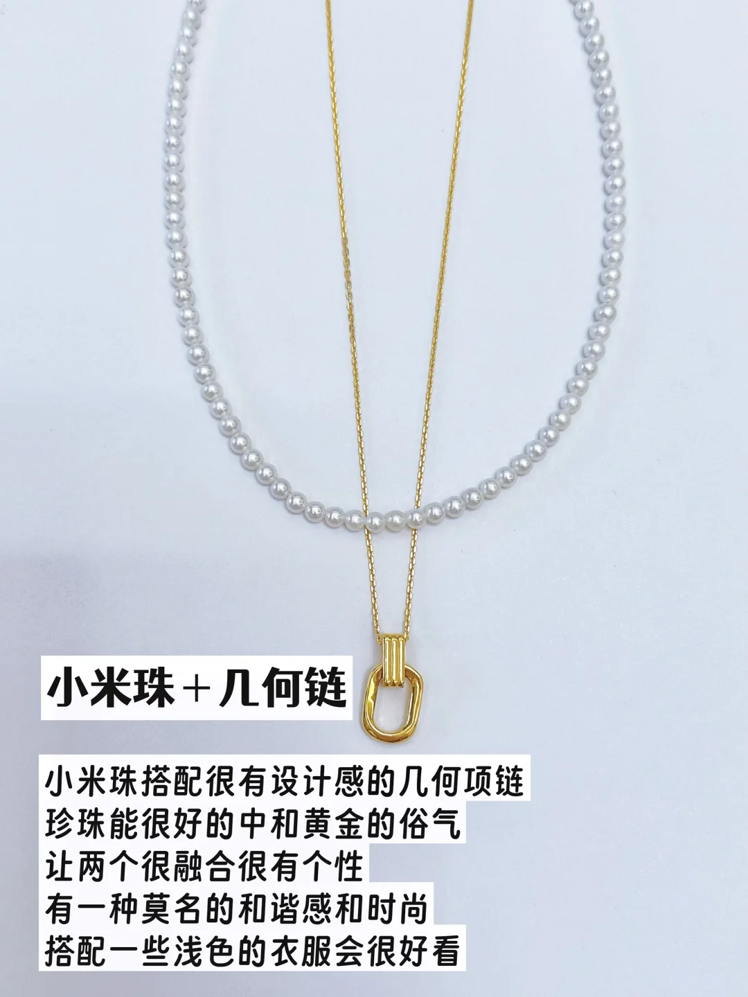 小米珠搭配很有设计感的几何项链