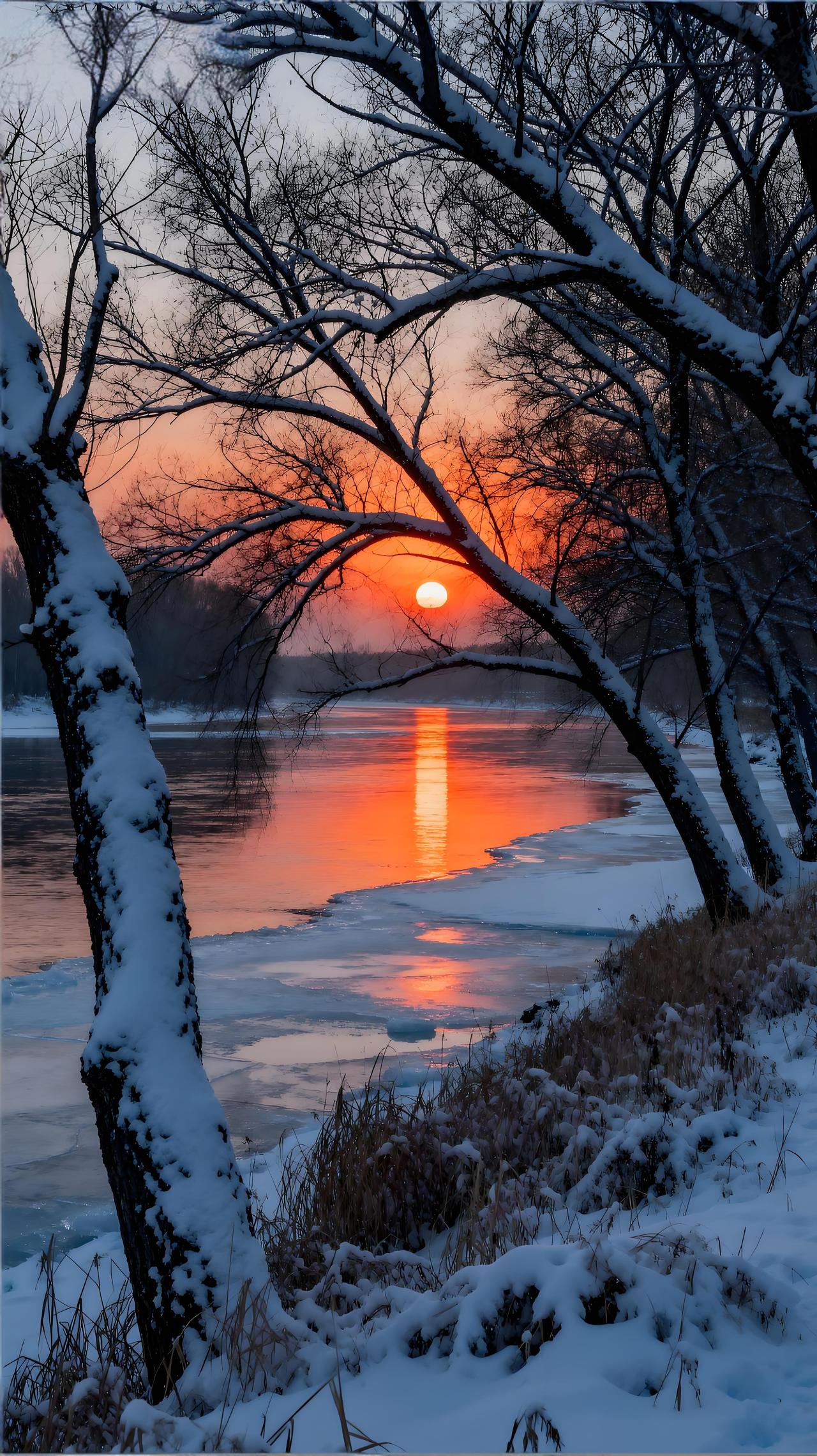 雪后的旷野,纯净如初生,每一次呼吸都清冽如洗 ,冬天来了要记得保暖哦 分享一张绝