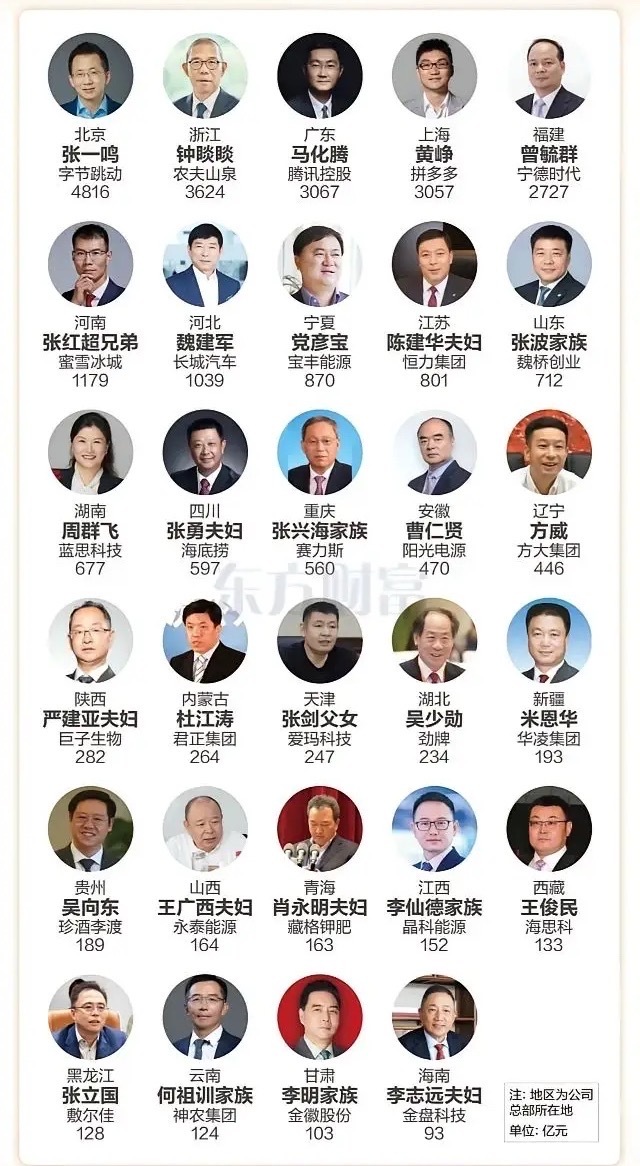 2025年各地首富一览,看看你们那最有钱的是谁?