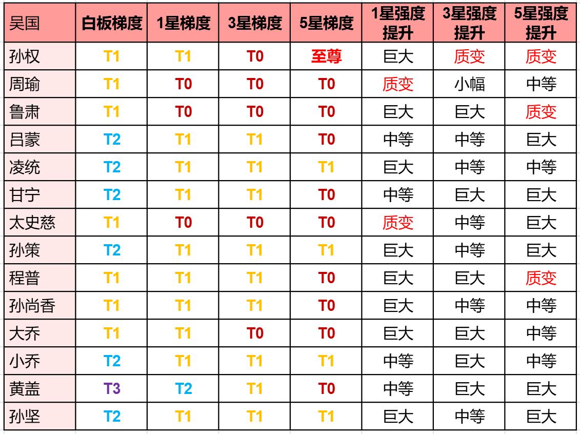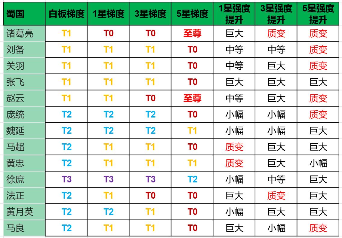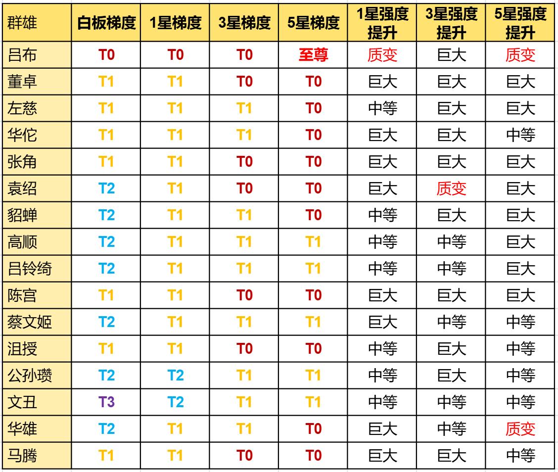 九牧之野 武将各星级梯度表 。有些武将白板强度就很高,有些则是随着进阶星级提高有质变,以下武将梯度表和强度变化表是综合当下PVP和PVE各武将表现评估得出: 强度梯度:至尊>T0>T1>T2>T3;注意所有武将均需合理武将组合和技能搭配才能达到相应强度!
