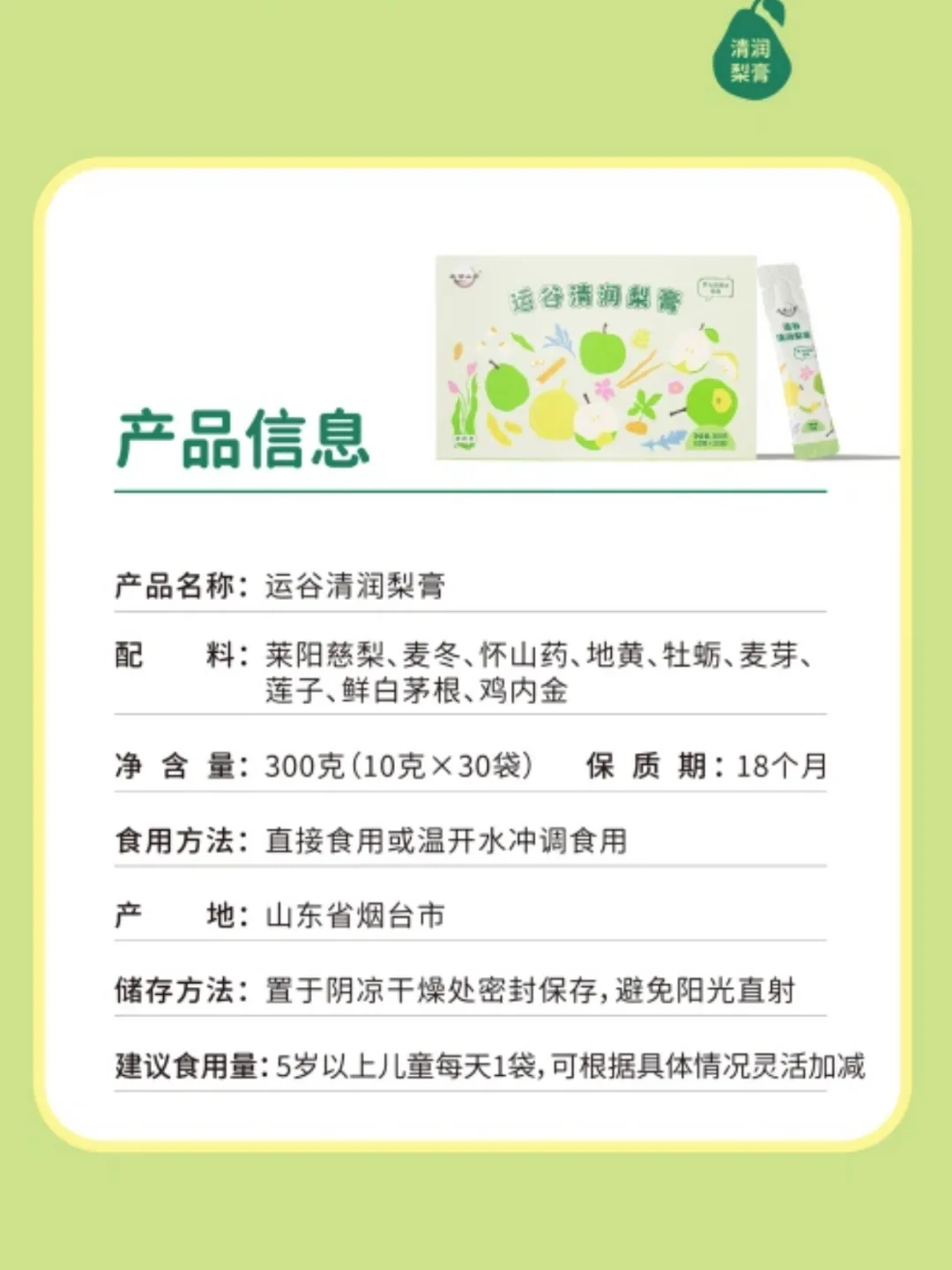 [仙女R]运谷山房清润梨膏,以古方为基,结合现代孩童体质,甄选莱阳慈梨,不止于润,更重在“养”。