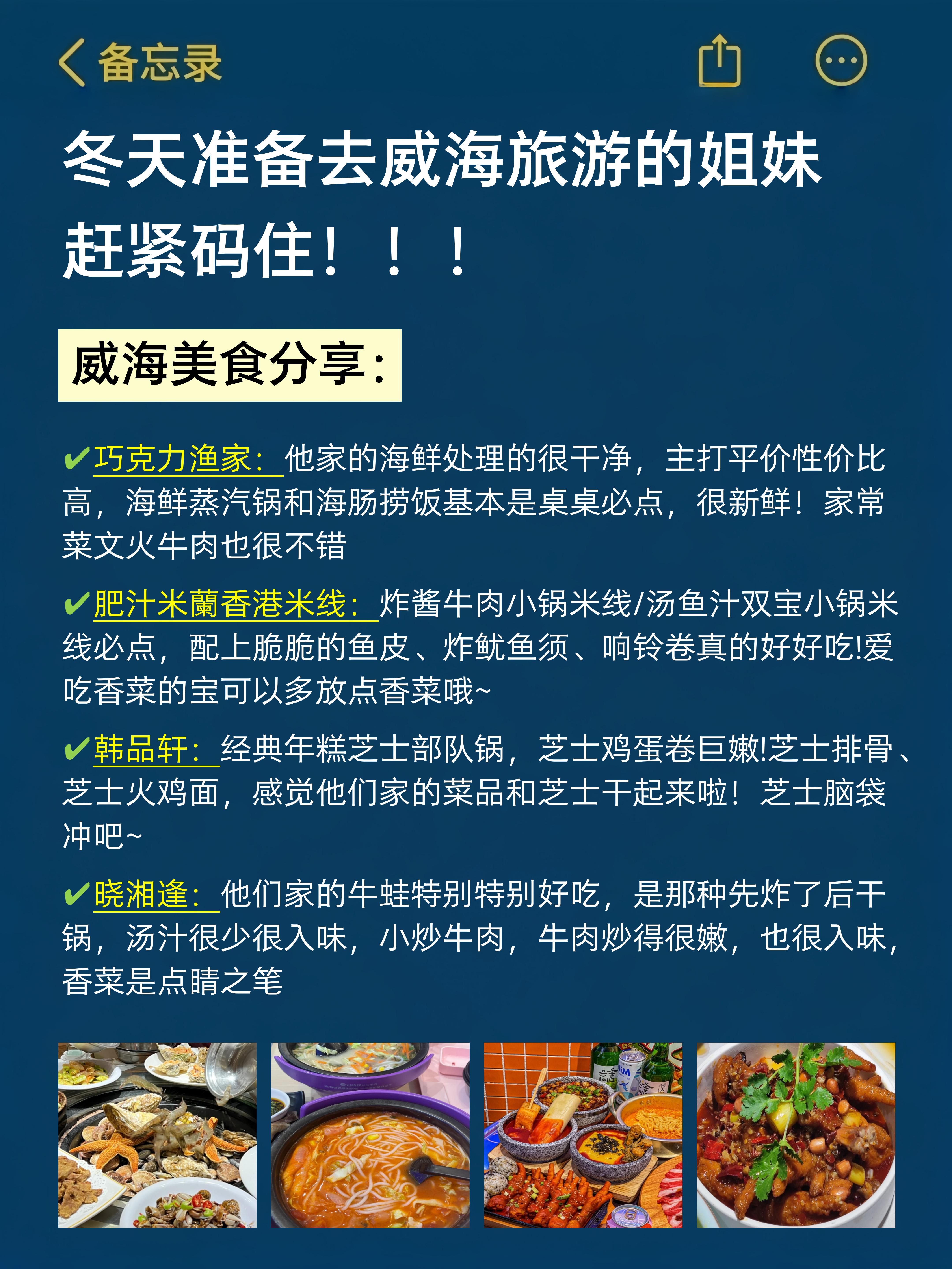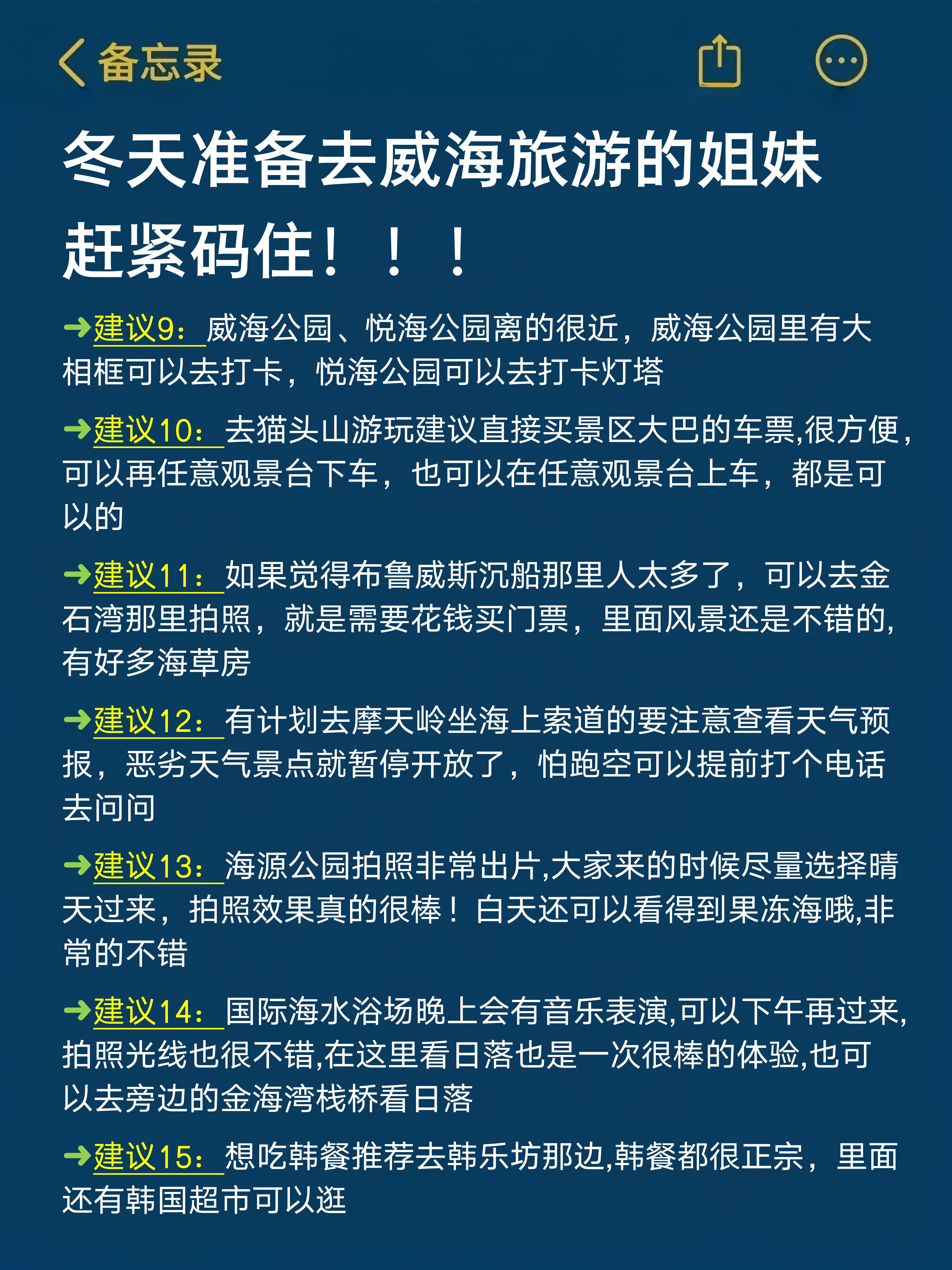 冬天去威海旅游的姐妹听劝。去了威海5次的我,威海的景点真的很多,熬夜整理一份威海旅游攻略大全,计划雪天去威海的姐妹收藏下,满满的干货能用得上🤔
