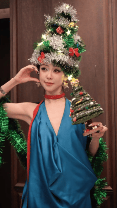 柳岩难得的喜庆造型