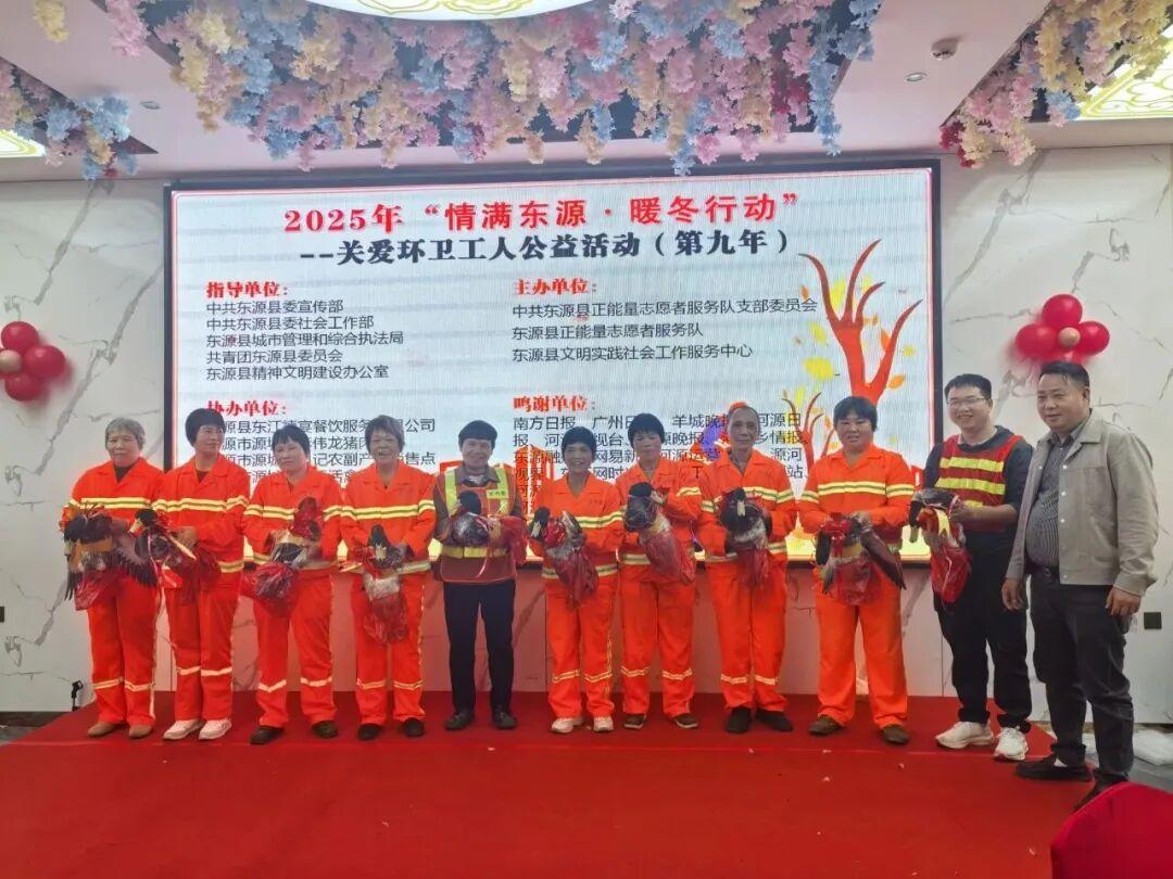 12月23日,2025年“情满东源·暖冬行动”关爱环卫工人公益活动(第九年)温情启幕。东源县城近300名环卫工人欢聚一堂。
