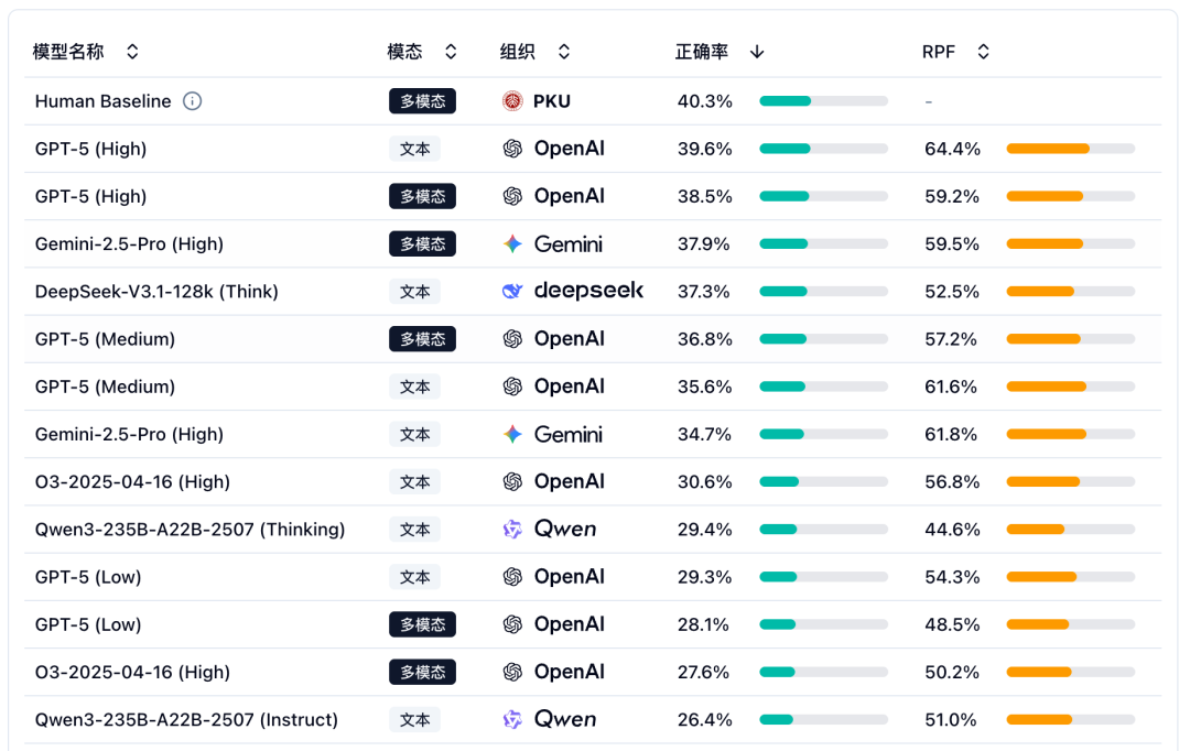 在这场精心设计的考试中,人类展现出了复杂的科学直觉。作为基线,参与测试的北大化院本科生取得了40.3%的平均准确率。这个数字本身,就足以说明这套题目的硬核程度。