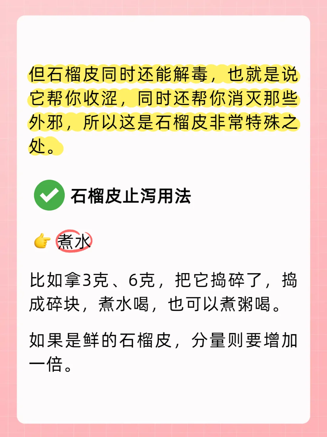 🔎石榴皮止泻用法