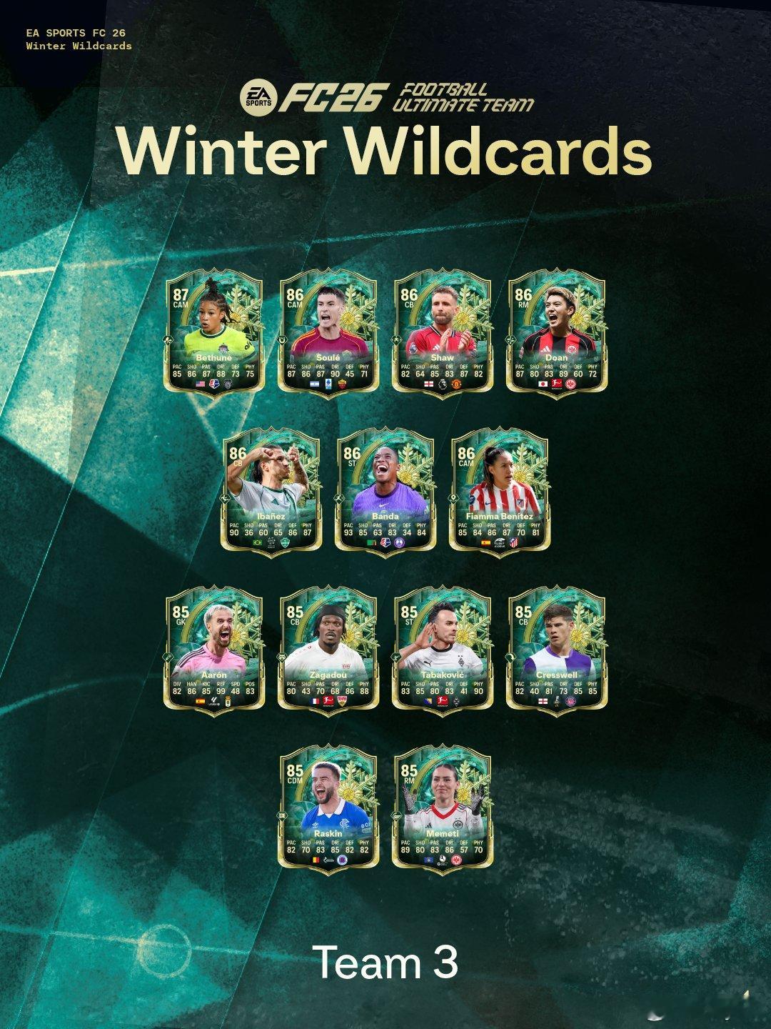 FC 26 Ultimate Team Winter Wildcards冬季外卡第三套阵容现已正式上线。FC26