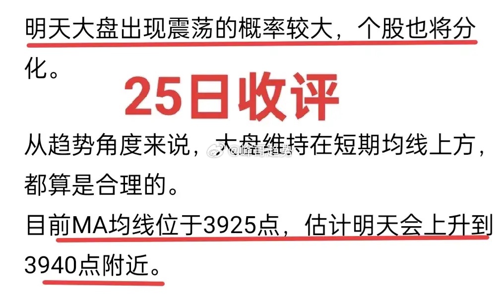 A股:正如峰哥盘前预测,大盘出现震荡,大盘也在预测区间3950~3940点得到了支撑!今天是出货还是洗盘?商业航天板块盘中出现了波动,板块个股分化,只有部分前排个股在震荡之后回归强势,其它的跟风个股基本以下跌告终。商业航天板块作为近期市场辨识度最高的板块,出现震荡对于大盘的影响很大。这与峰哥在开盘前的预测是一致的。估计下周该板块还将继续调整!沪深两市成交金额今天达到了2.16万亿,较昨天的1.92万亿,放大约2400亿。两市上涨个股不到1800只,下跌个股超过了3200只。成交量放大,但个股跌多涨少。市场整体来看,出现的特征比较明显,局部诱多出货,局部震仓洗盘。今天大盘的震荡,算是个演习,下周大盘还将表演“好戏”。要不要跑路?峰哥午评的时候回答过这个问题。已经走出了上升趋势的股票可以继续持股,甚至可以逢低吸纳。个人观点,仅供交流,不构成投资建议!理财有风险,投资需谨慎!大盘行情大盘要跌吗大盘分析行情大盘中方决定反制美方军工相关企业及高管