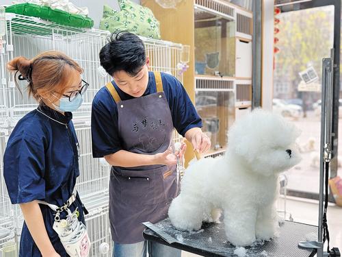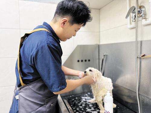 陆开店这些年,焦江丽每天都要给宠物洗澡、剪毛,还要遛它们,晒太阳,忙到深夜才能歇脚。她几乎没出过远门,哪怕只是出去玩两三天,心里也总惦记着店里的“毛孩子”。累到想放弃时,看着它们蹭过来撒娇的模样,立刻就觉得这一切都值得。
