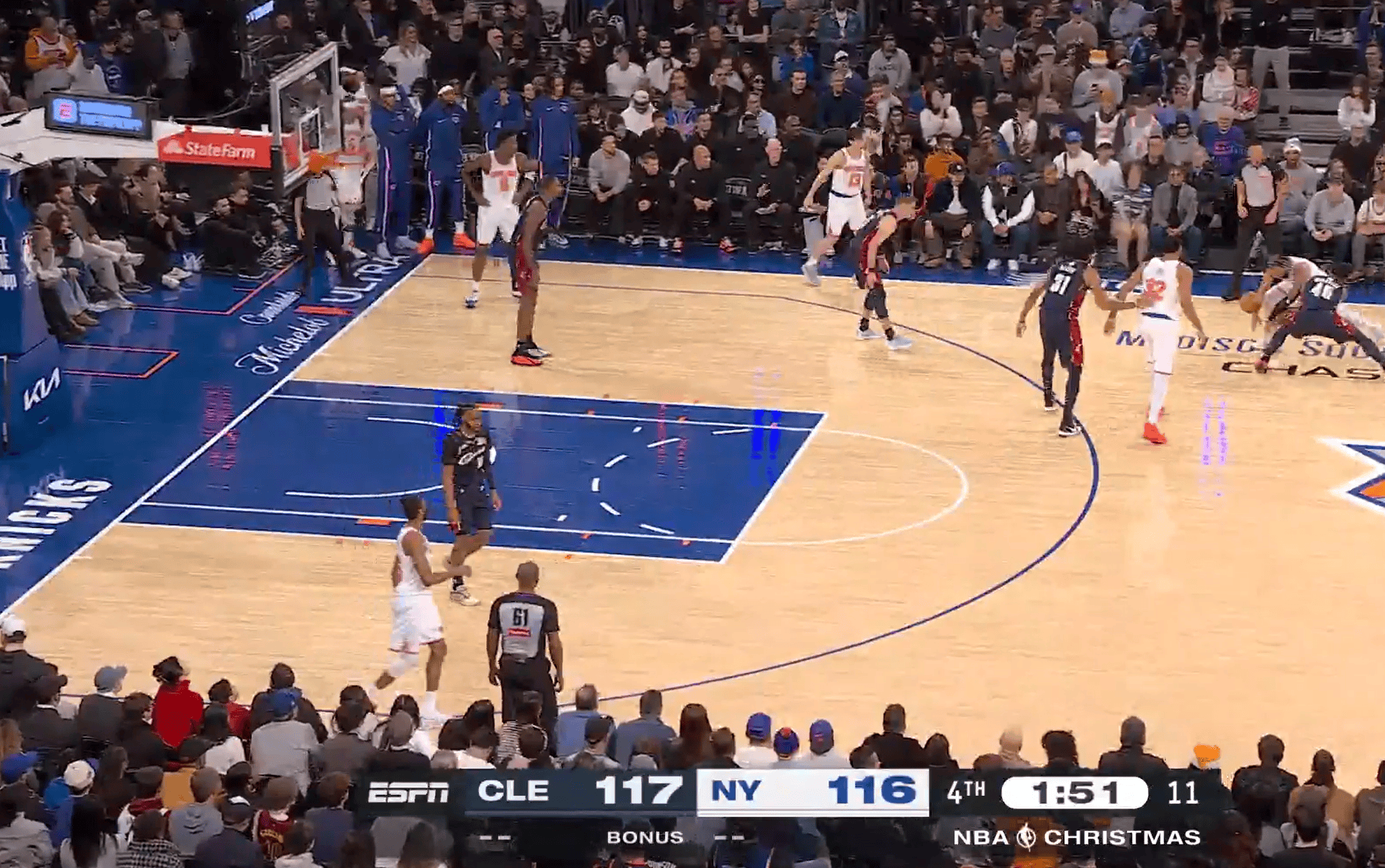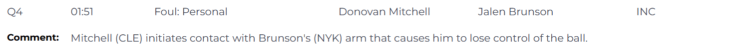 比赛最后1分51秒时,裁判漏吹了米切尔的犯规,他与布伦森的手臂发生接触并导致后者对球失去控制。