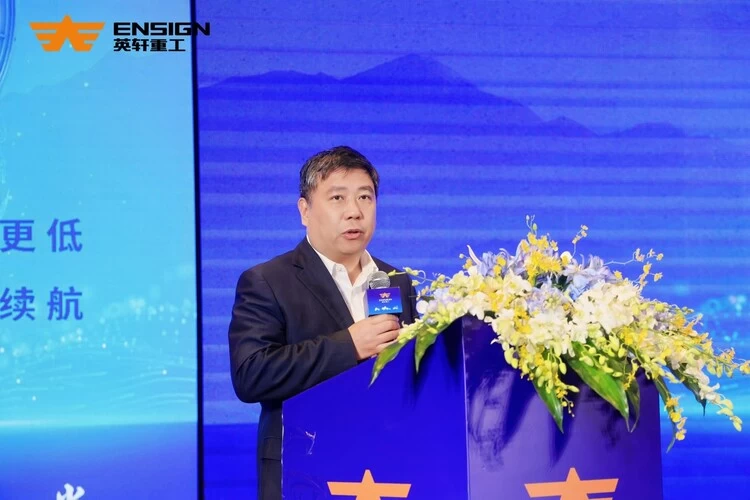 英轩集团总裁李彦轩在致辞中强调:“2025年,新能源装载机市场已完成从政策驱动到市场驱动的质变跨越”他回顾了英轩重工在新能源领域的技术深耕历程——从行业首台纯电装载机,到行业首台混合动力装载机,再到全球首台甲醇混合动力装载机,一系列里程碑式成果的背后,是英轩重工对新能源发展战略的长期坚守与持续投入。李彦轩指出,技术是产品的核心根基,英轩重工成熟的三电技术与潍柴新能源动力系统深度融合,将实现混动机型在节油表现及纯电机型在续航能力的跨越式提升,此次强强联合,必将成为新能源装载机的新标杆和新典范。