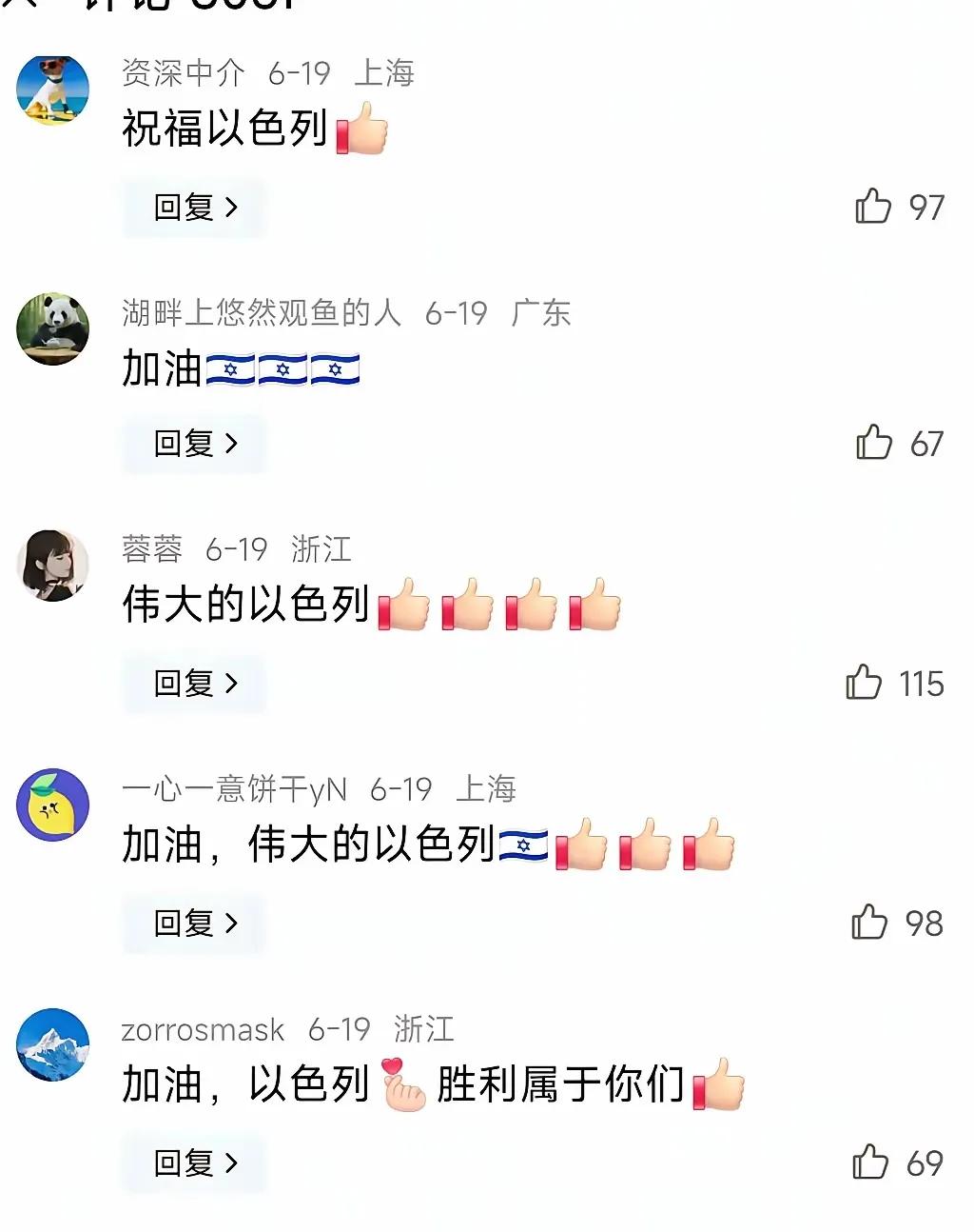 稍微有点良知,稍微有点立场的人,都喊不出这样话。 以色列驻华使馆的头条号的评论区里,有十几个账号的留言是“伟大的以色列”。 大都是一些系统起名的账号。以色列在哪里他们可能都不知道,怎么知道以色列“伟大”? 网友爆料,说一句好话五元钱,一个账号一个星期只能用两次。他也曾被拉进这种群,但他的良心和他的立场告诉他不能赚这种钱。 伟大可不是随随便便能喊出来的。