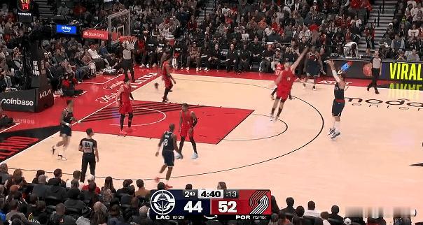 哈登空中失衡打成2+1砍14分难止血 快船上半场进攻高效仍落后开拓者8分 12