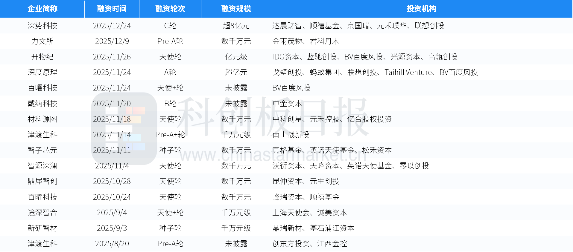 本周投融资事件列表