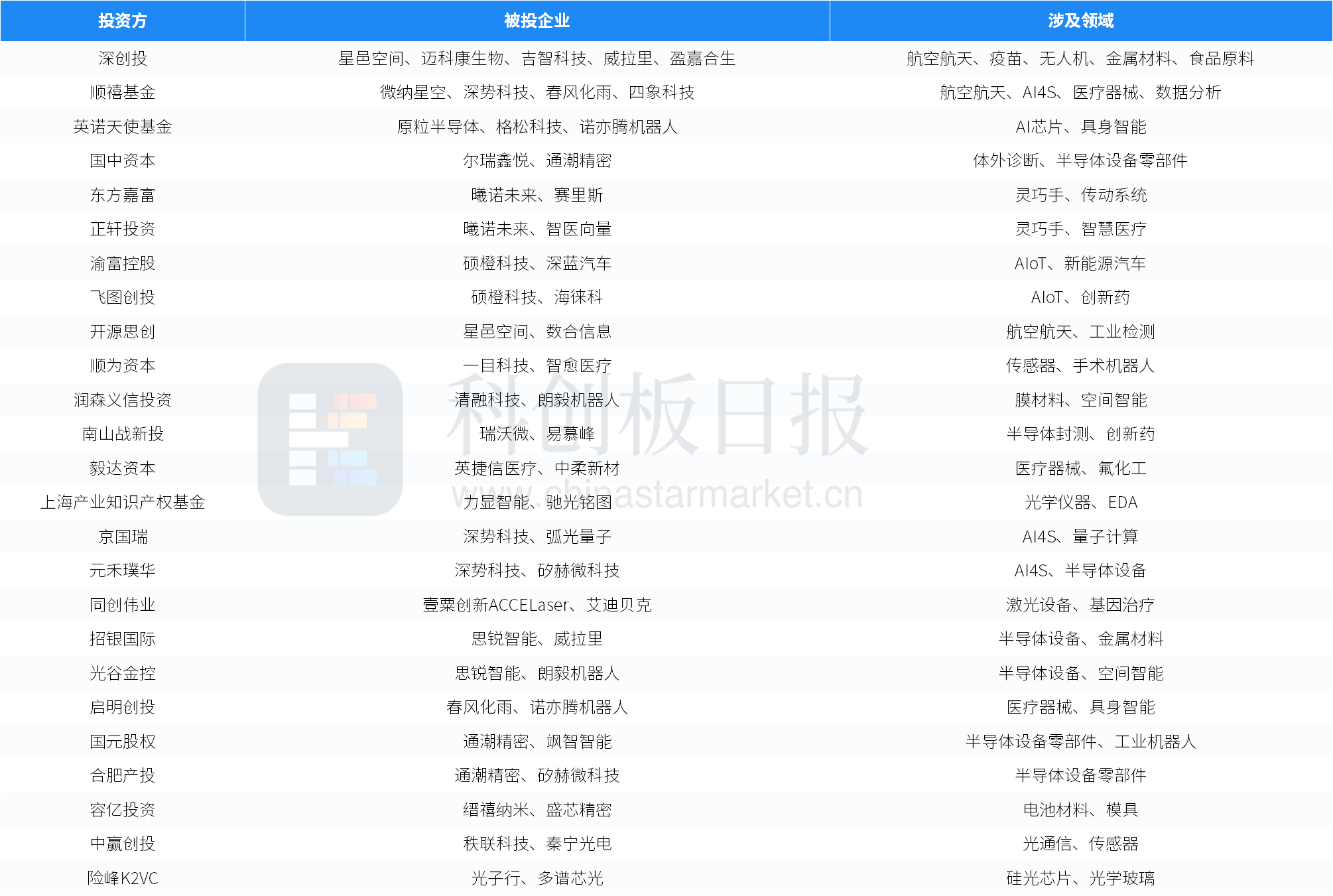 本周部分活跃投资方列举如下: