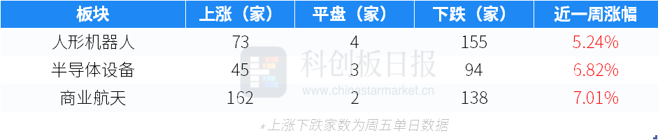 作为对比,本周人形机器人、半导体设备、商业航天二级市场表现如下表所示。