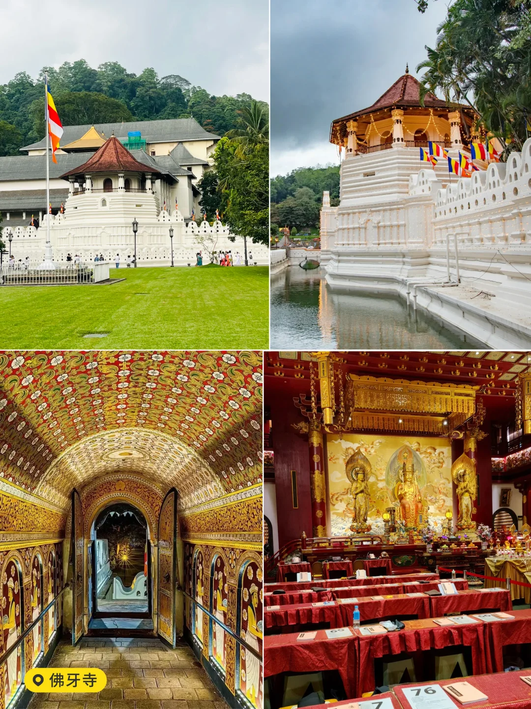 佛牙寺:藏着斯里兰卡国宝佛牙舍利,殿宇鎏金璀璨,香火袅袅,满是虔诚氛围