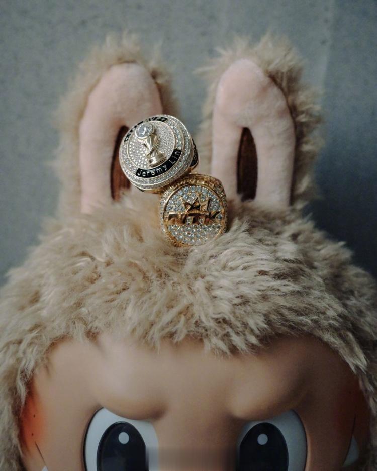 林书豪写道:“冠军戒指来了!永远感谢这段旅程!”