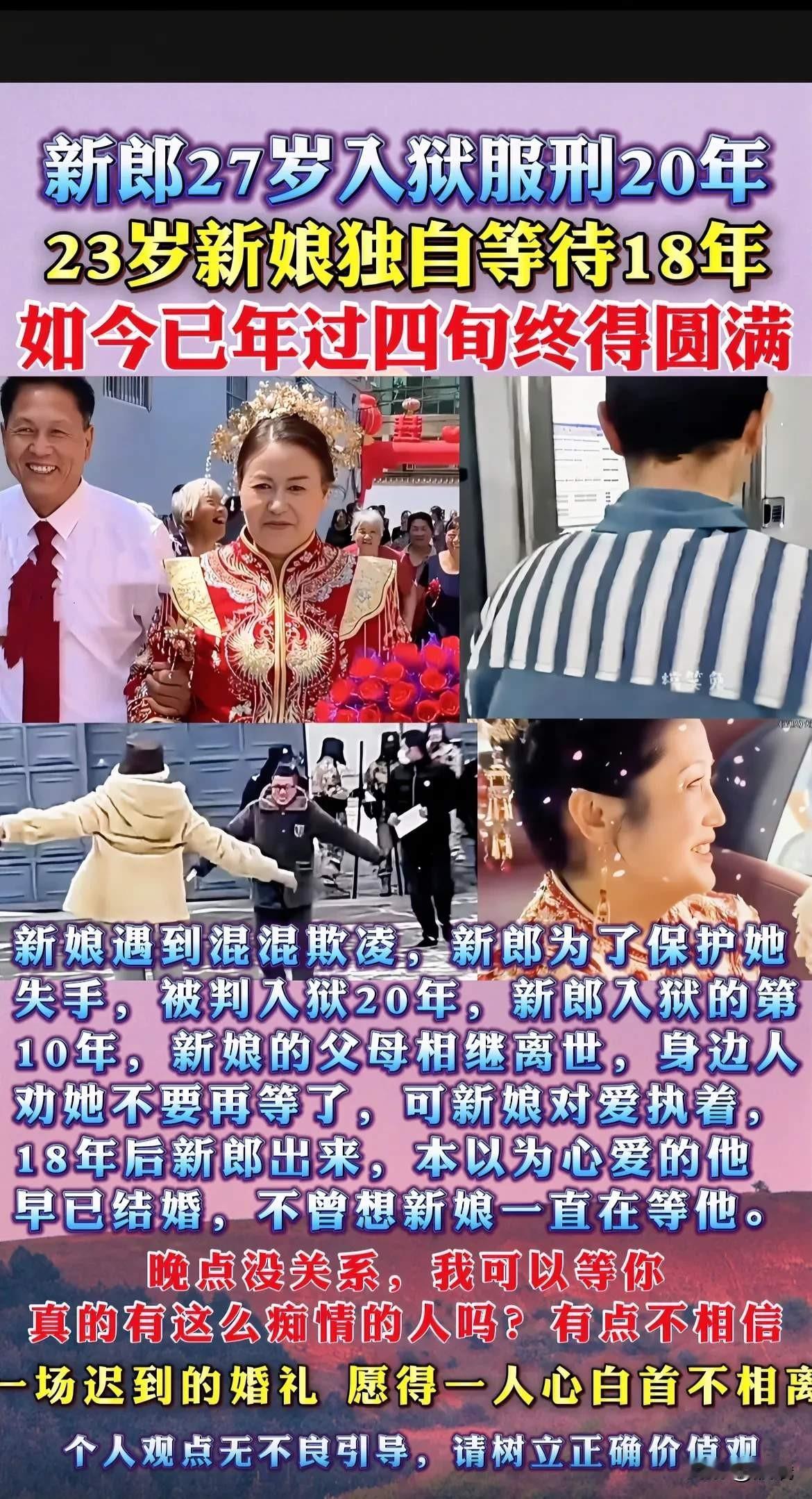 23岁女子被歹徒围堵在巷口,27岁的未婚夫为护她周全,失手致人重伤致死。法庭上,他说:"等我出来。"可这一等,便是二十年。 双方父母相继离世后,女子独自操持两家生计。男子在信中写:"若我负你,来世变只燕子天天绕着你飞。"她回信总画只歪歪扭扭的燕子,旁边写着:"等你。"那些年,她学会了在风雨中挺直脊梁,他懂得了在黑暗中沉淀锋芒。 近日,47岁的他走出监狱大门,46岁的女子捧着白玫瑰泣不成声。民政局里,两双布满皱纹的手终于交叠在结婚证上。邻居抹泪感叹:"女人能有几个二十年?"她却笑着摇头:"爱不是用年月计算的,是看谁愿意把心熬成蜜,等对方慢慢尝。" 生活总爱以苦难为笔,却写不出比这更美的情书。他们用二十年证明:真正的圆满,不是没有裂痕,而是有人愿意用一生,把裂痕补成光的形状。就像桂花糕,要经过蒸煮、捶打、晾晒,才能把苦涩酿成甜香。