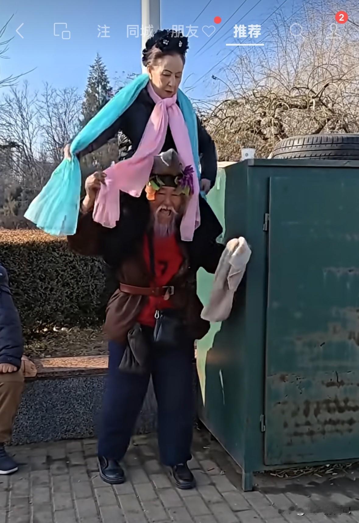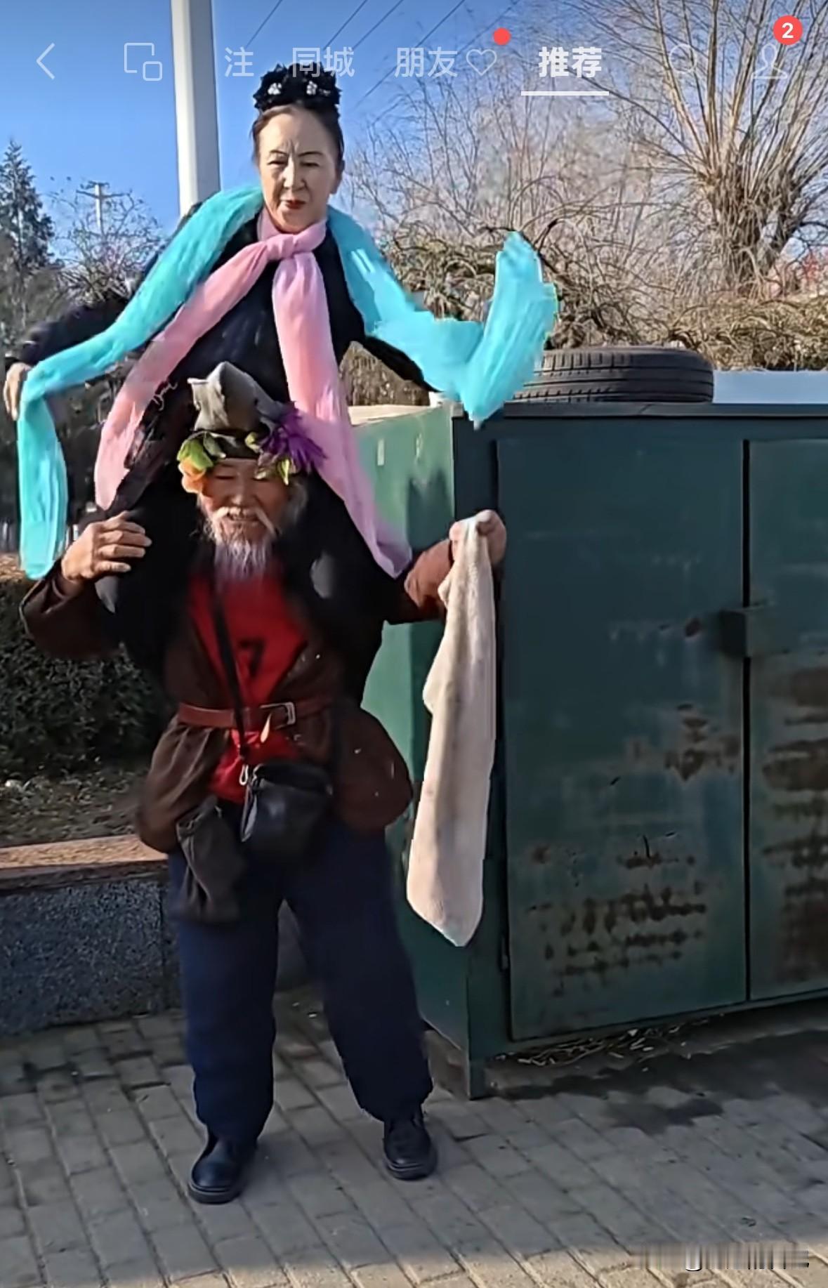 大妈站到花坛上,大爷弯腰把大妈驮起来骑庚梗,大爷大妈玩儿出新花样。 这对儿大爷大妈在营口很出名,两个人主要是以出格的动作出名的,反正脸上的皮厚点,管别人怎么看呢。 年轻人轻易都不敢做这个动作,怕摔下来,看大爷起码80多岁了,体力真好。 大妈胆子也真大,这要万一摔下来,估计直接开席了。真不省心呀! 不知道他们的儿女看到了怎么想,就不怕丢脸么?