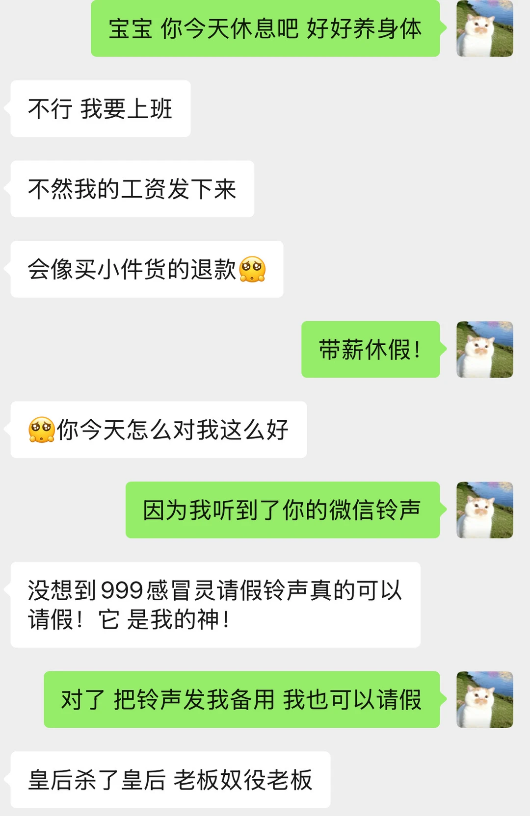 搞笑 搞笑聊天记录 999感冒灵请假铃声 999感冒灵 职场 打⼯⼈ 办公室⽇常 打⼯⼈精神状态 请假