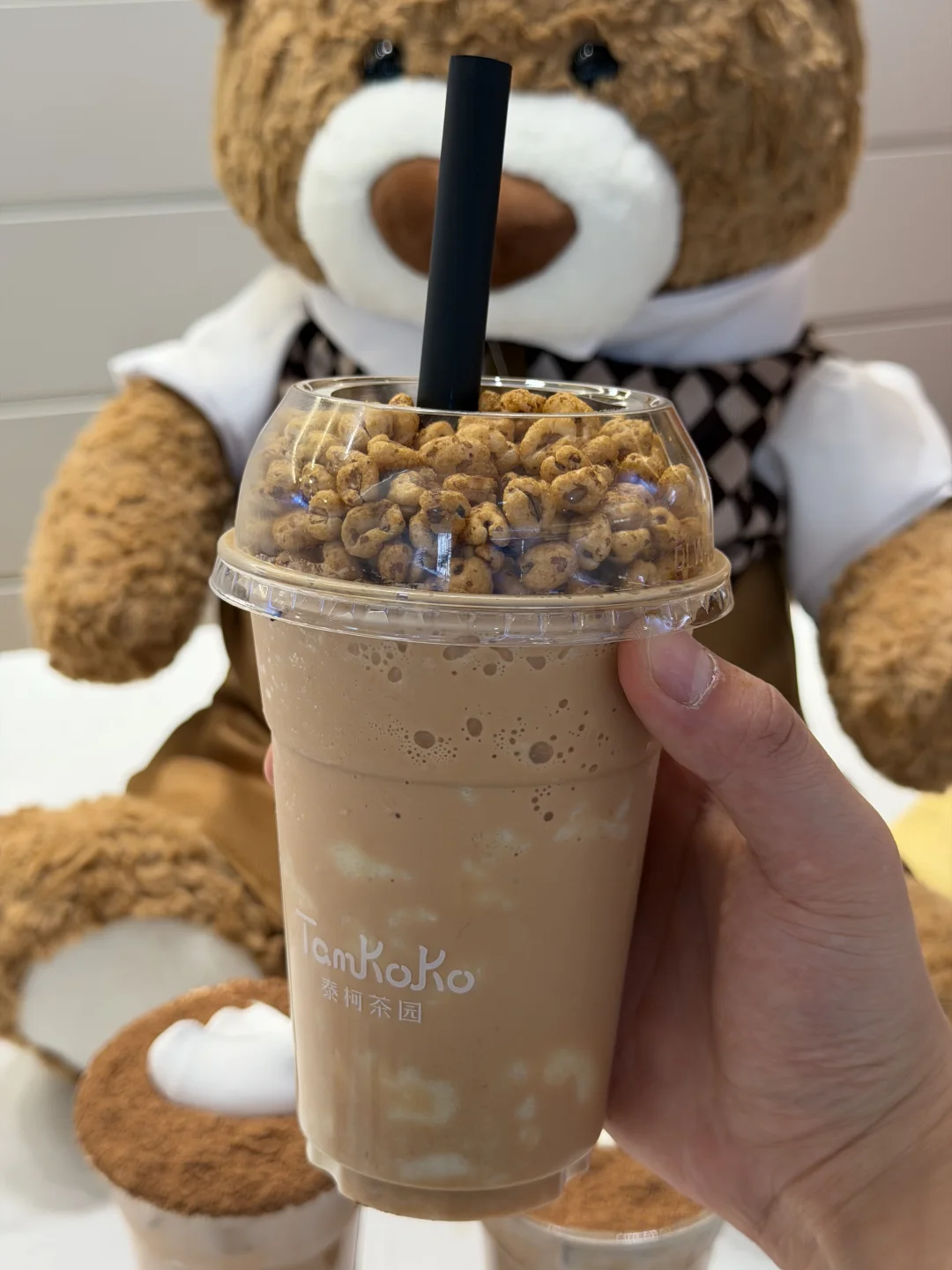 爆米花泰奶冰好好吃,边喝奶茶边吃爆米花好爽
