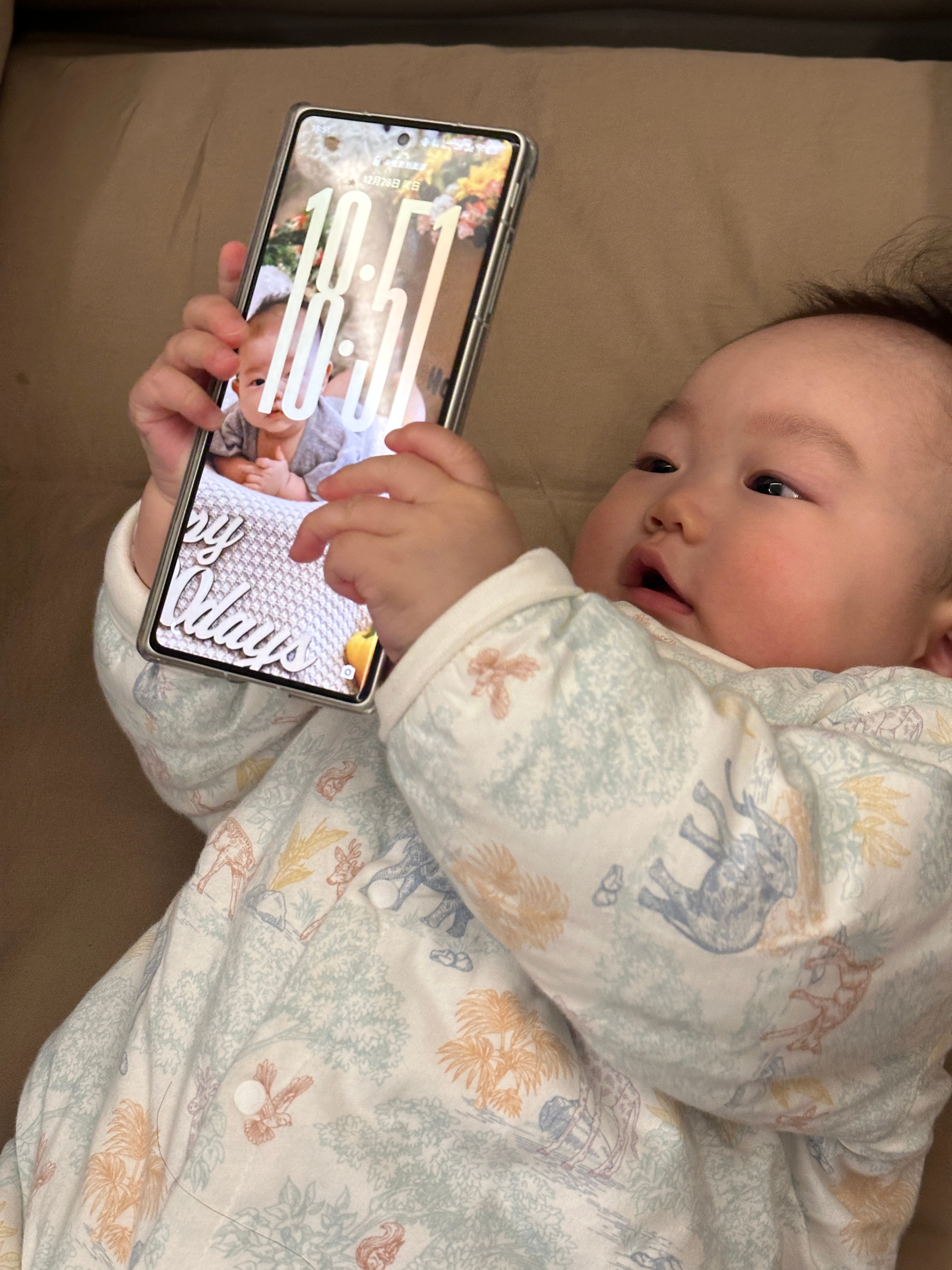 这应该是迄今为止最小的折叠屏用户了吧该说不说vivoX Fold5真的是轻薄的不要不要的,几个月的小朋友就能轻松拿起~