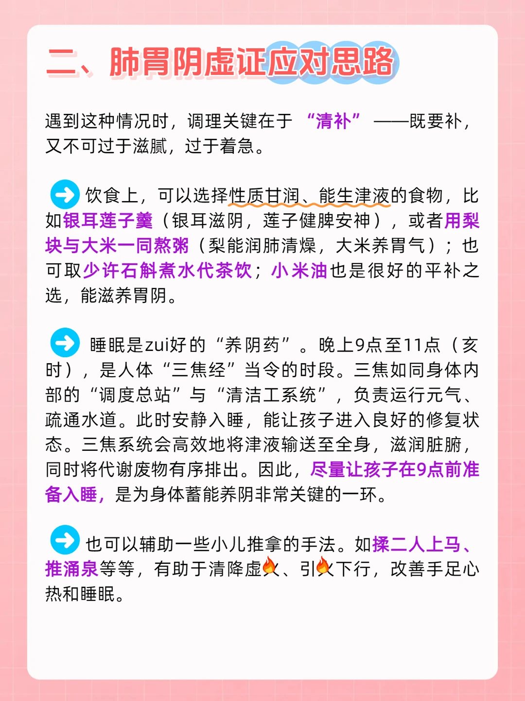 [种草R]可以用一些养阴生津的食方、九点钟睡觉、做做相关的小儿推拿(详情见图片)。
