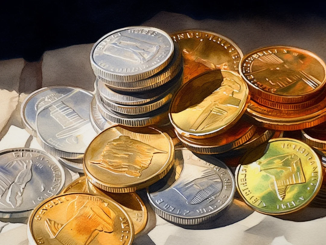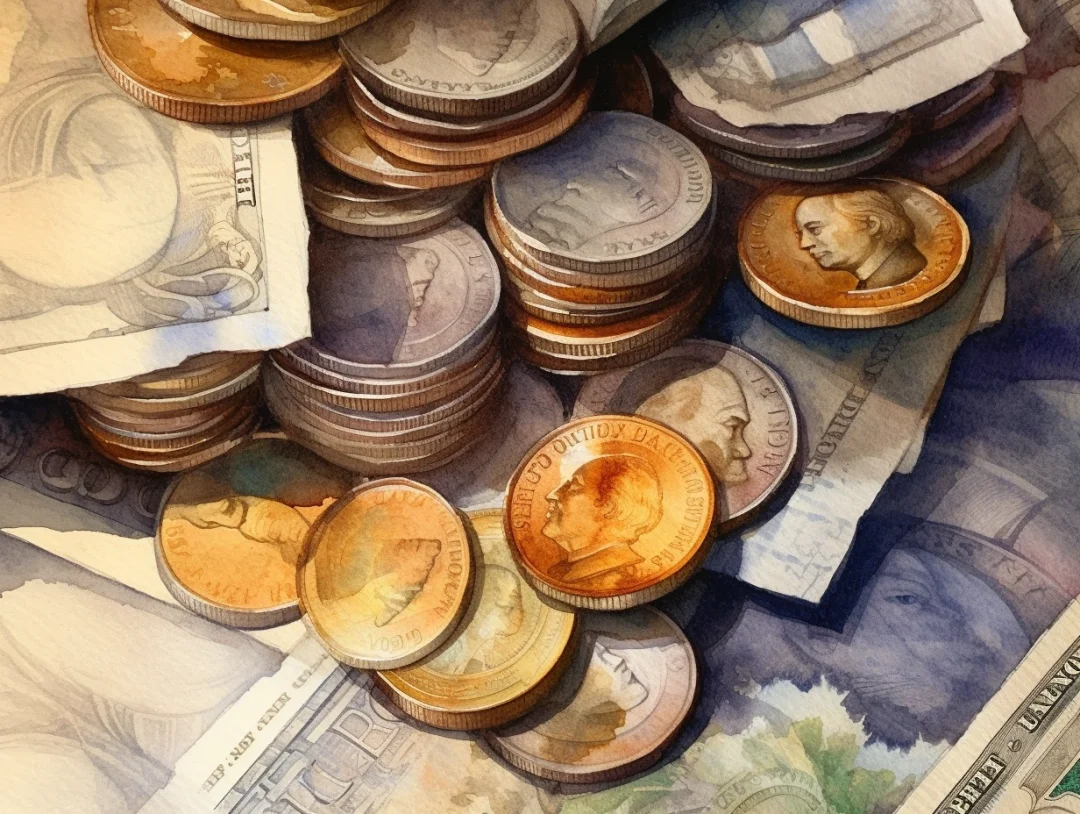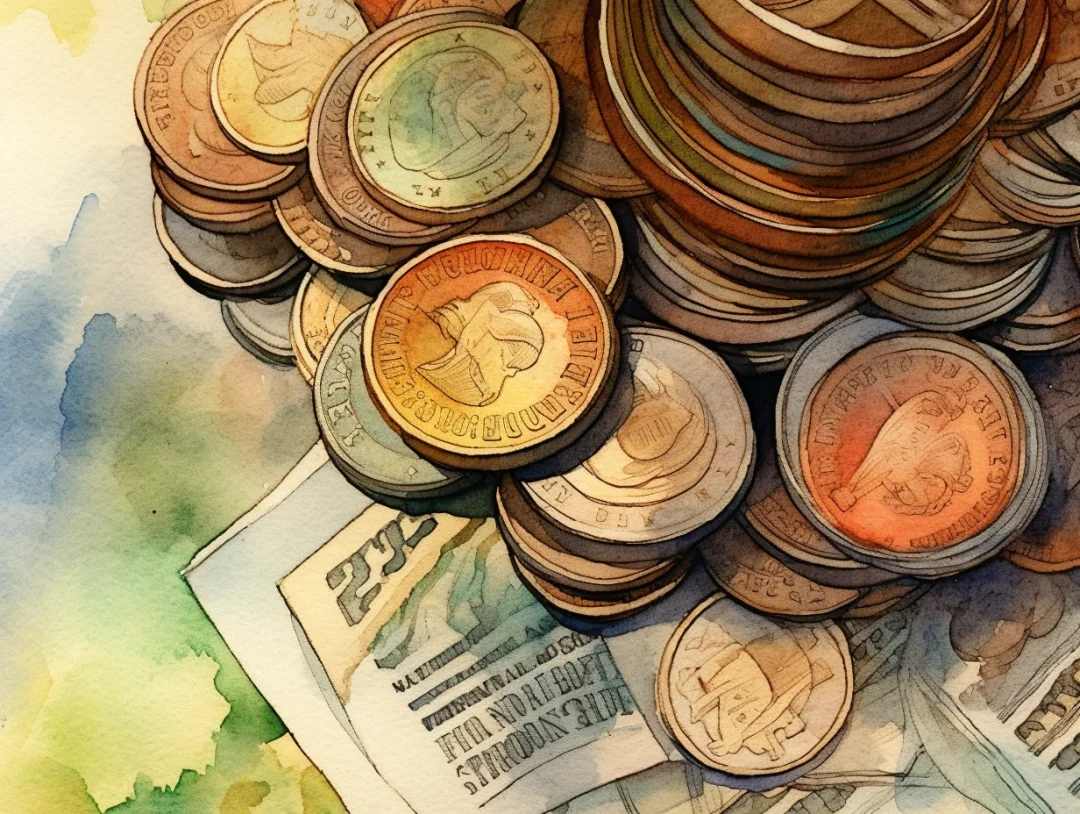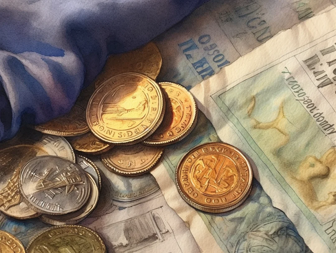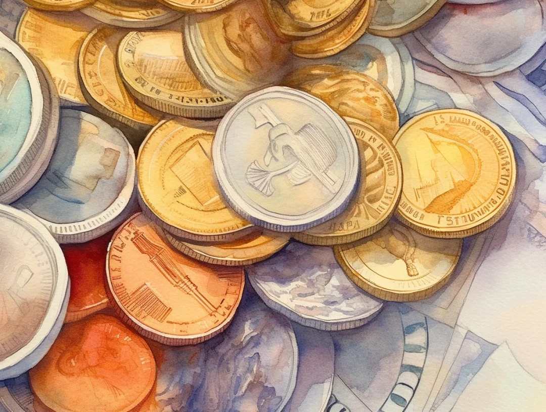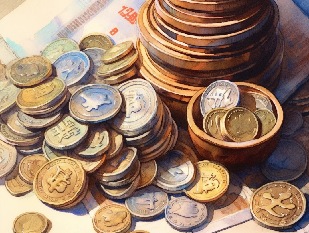 水彩 midjourney AI 纸币 金银币