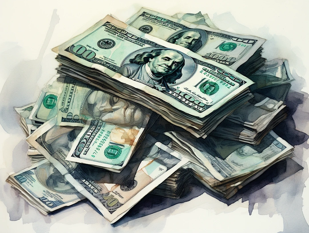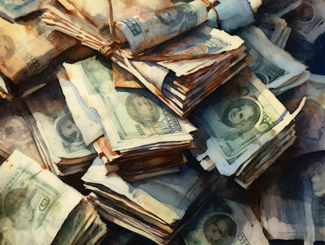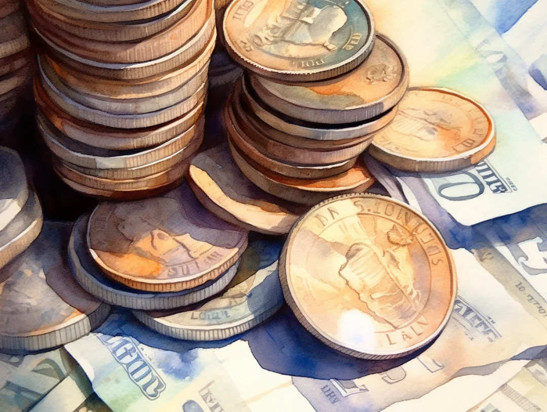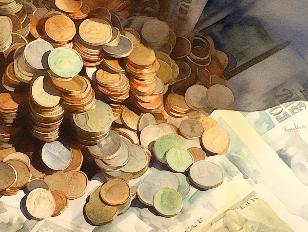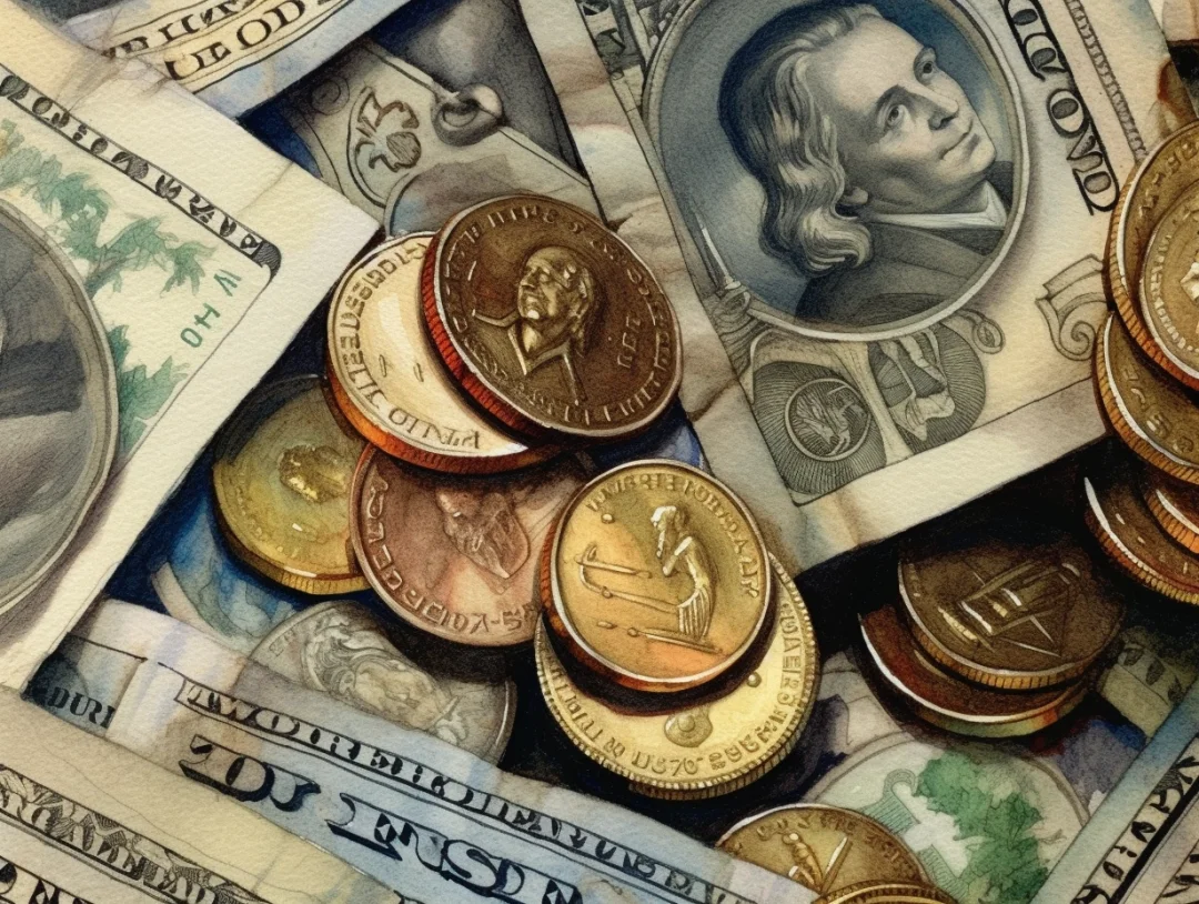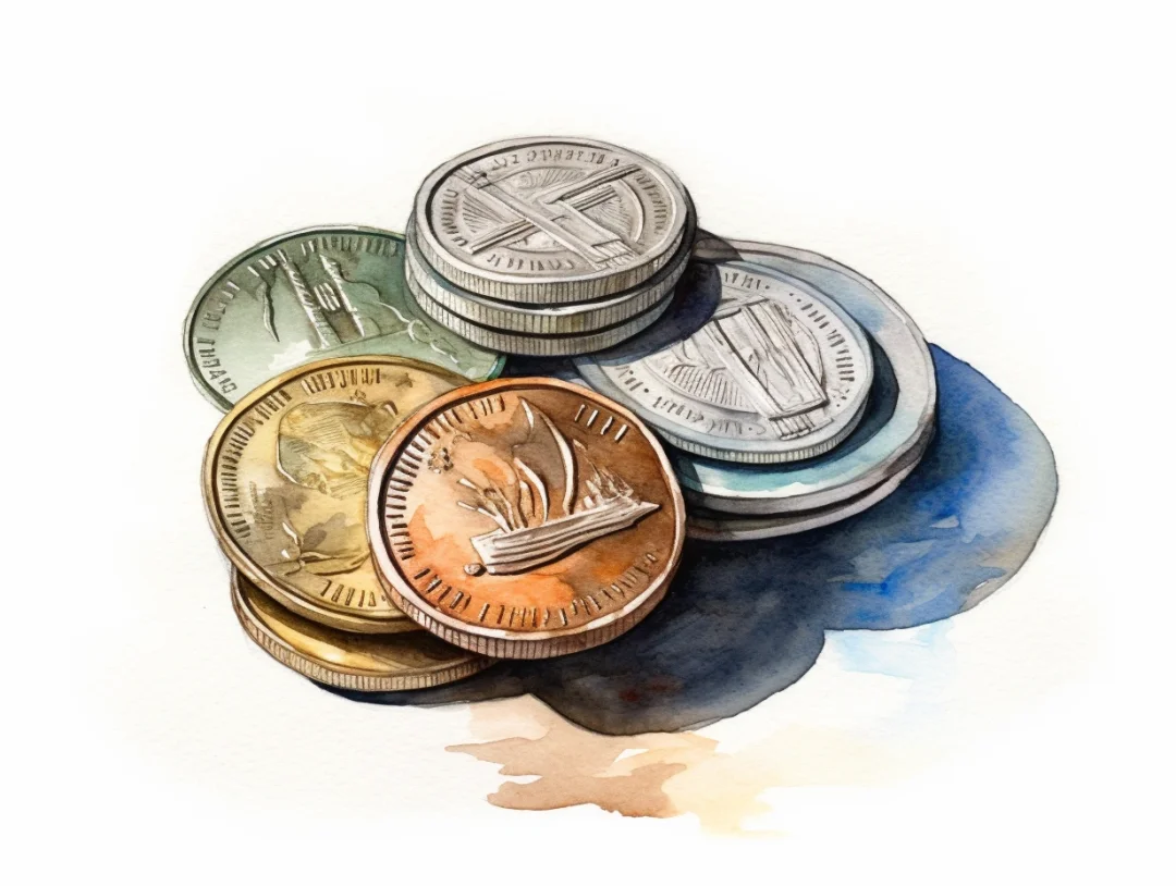 水彩 midjourney AI 纸币 金银币