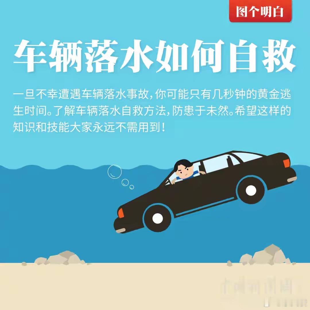 【车辆落水如何自救】一旦不幸遭遇车辆落水事故,你可能只有几秒钟的黄金逃生时间。戳