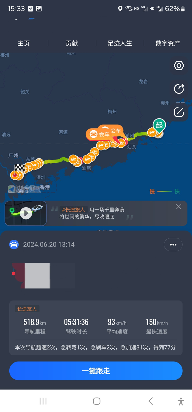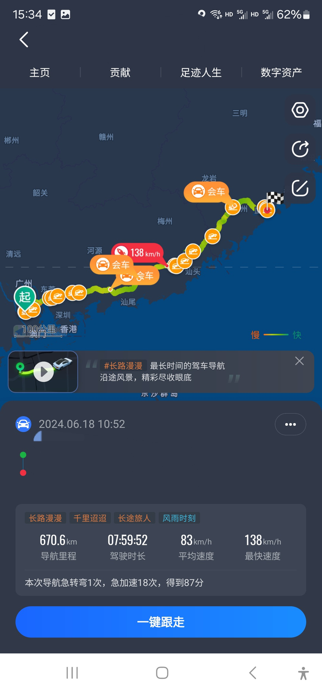 十一代插混雅阁高速油耗表现 临时接到通知,从中山出差到厦门,出发电量大概80左右,到南沙服务区纯电续航为0,电量5%满油重置B里程,全路段几乎全湿地状态,基本上在条件允许的情况下都是顶着限速走,并且有轻微超速,广东区域内偶尔有暴雨状态,到了福建漳州暴雨情况更加严重,所以不敢开快,到了漳州服务器,里程B 495公里, 均速101,油耗表显5.4,加油27.48升,综合计算5.53L,其实之前表显也跳到5.5,后面路况好一点又跳回5.4了,由于本田的表显不显示小数点后面的第二位数字,所以本田的表显还是非常准确的(我上一台十代雅阁小熊油耗测试3万多公里的油耗和表显误差在0.1范围内),在回来的时候也从漳州回来测试了油耗,由于晴天加上归心似箭,所以超速有点厉害,测试300多公里均速105,平均油耗5.3,其实这对于插混来说,已经挺不错了,所以后续也懒得再测试了,因为日常代步几乎都是纯电使用,高速的油耗对于我来说并不太重要,所以也并未刻意去省油的开着测试油耗,只是就想试着看看这台插混雅阁在馈电的情况下,高速的油耗有怎么样表现。