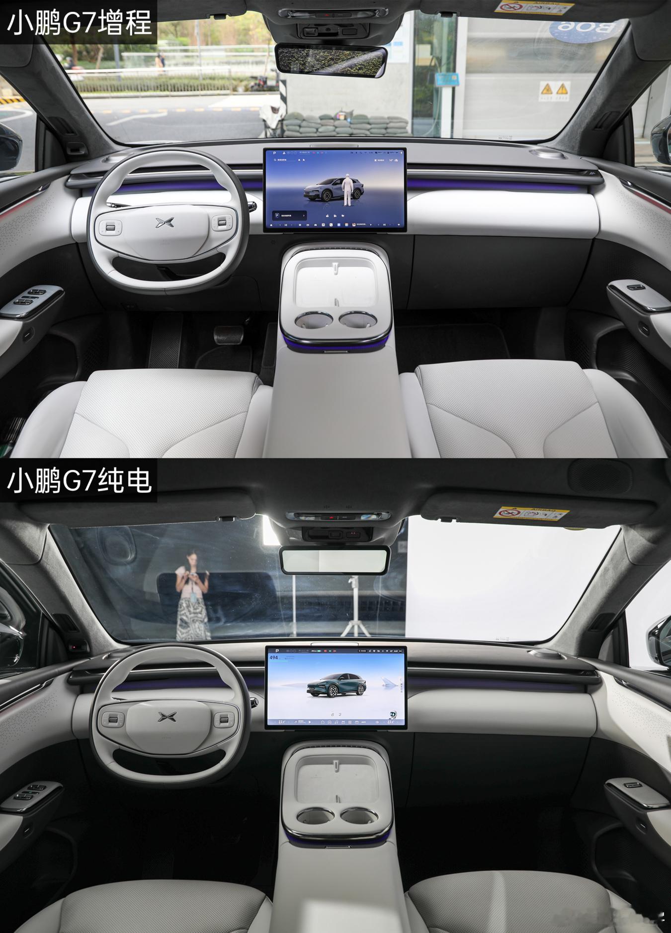 这么看,小鹏 G7 超级增程和纯电版外观、内饰整体变化都不大。多了一套增程系统,