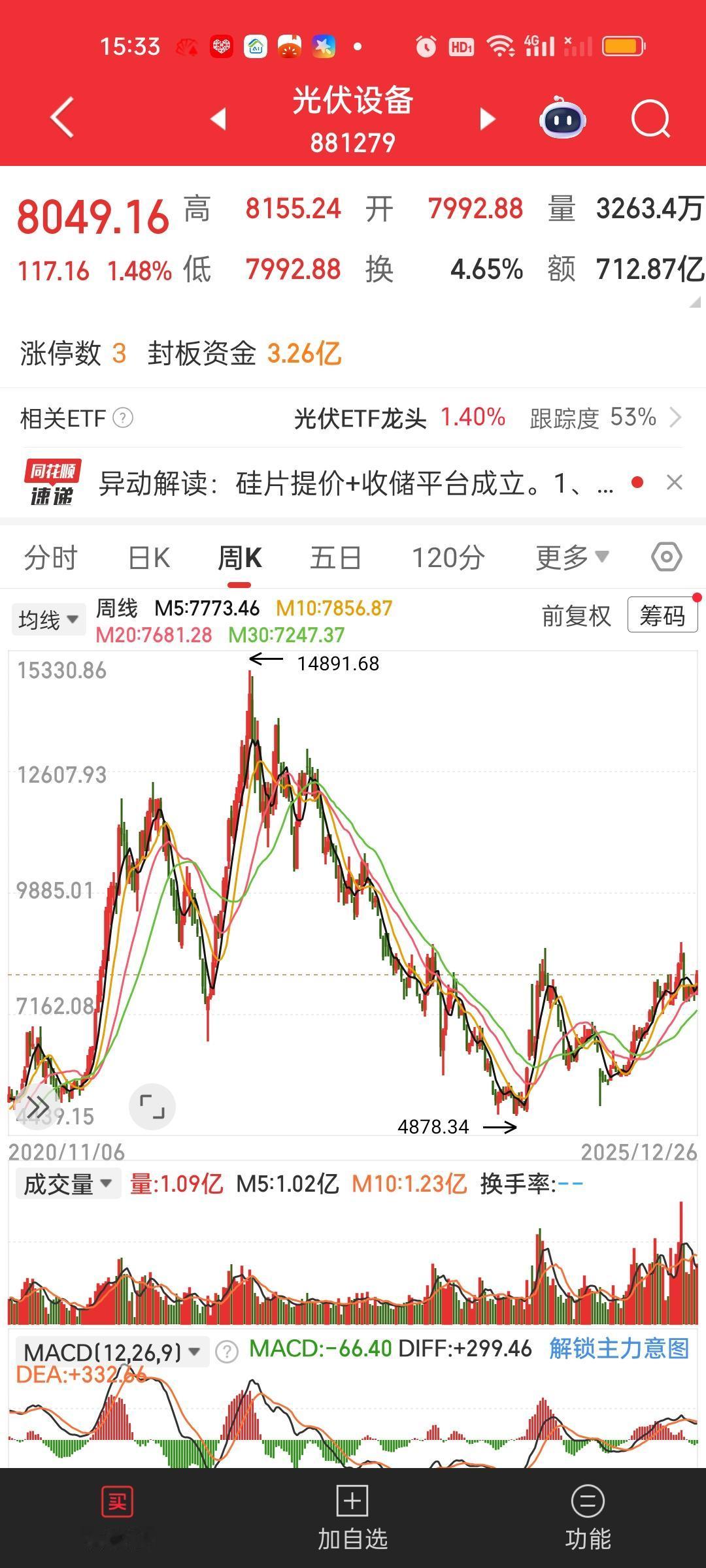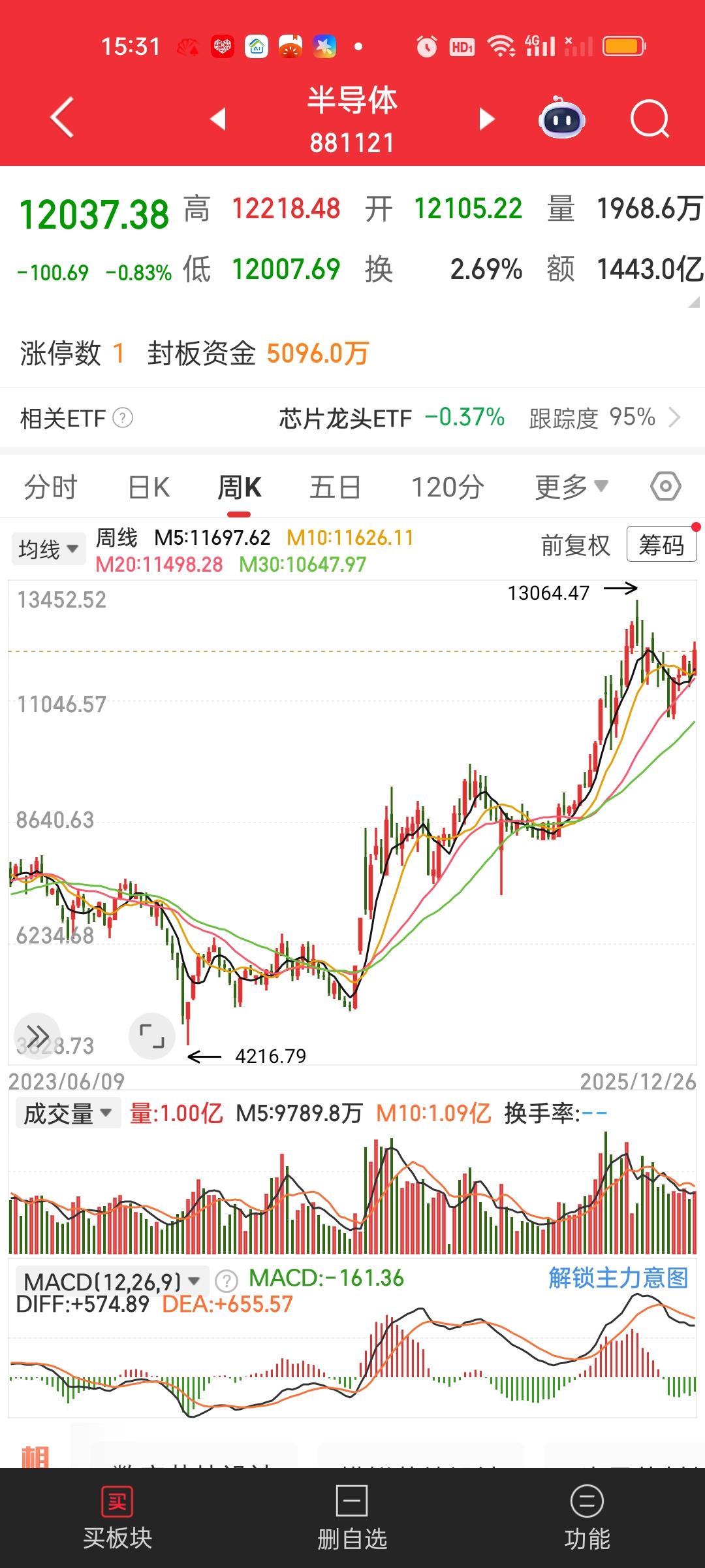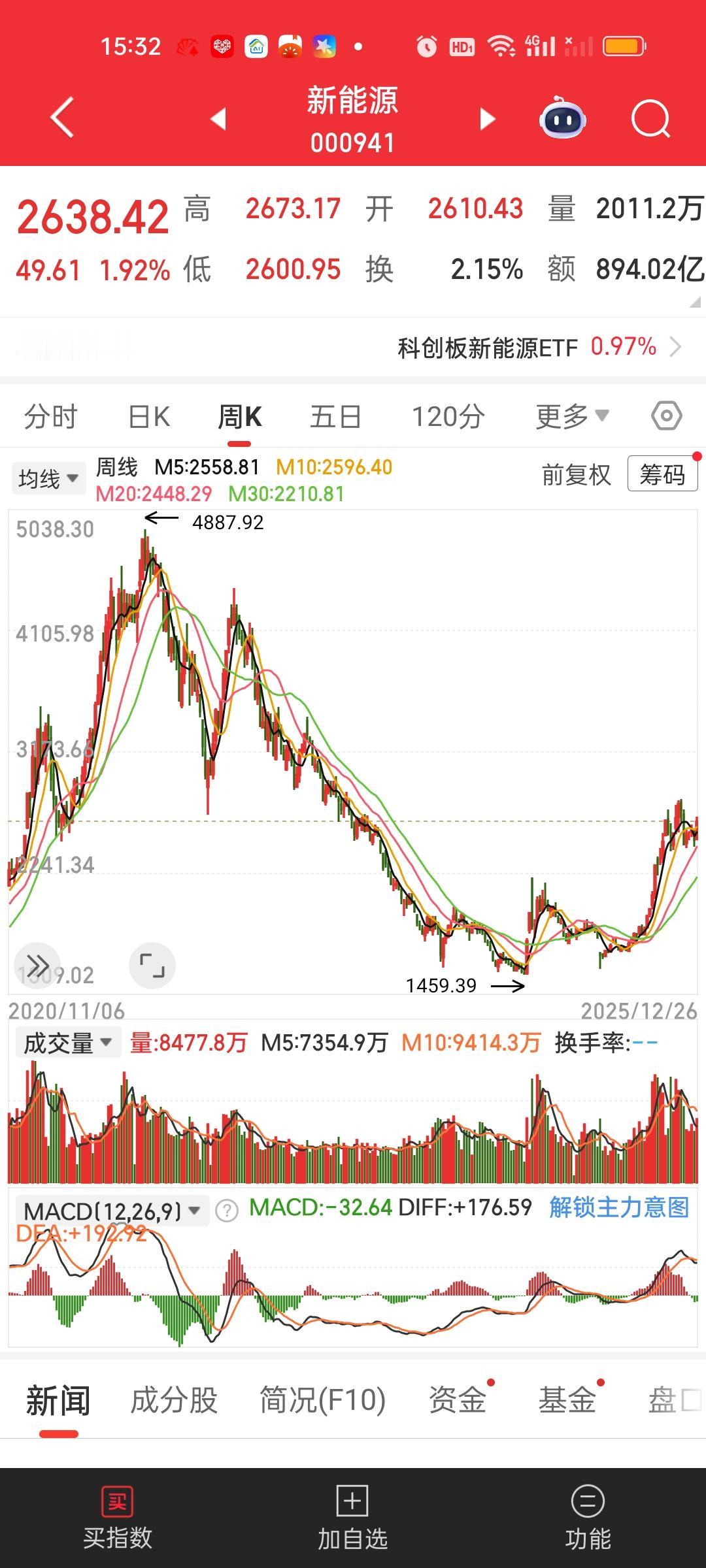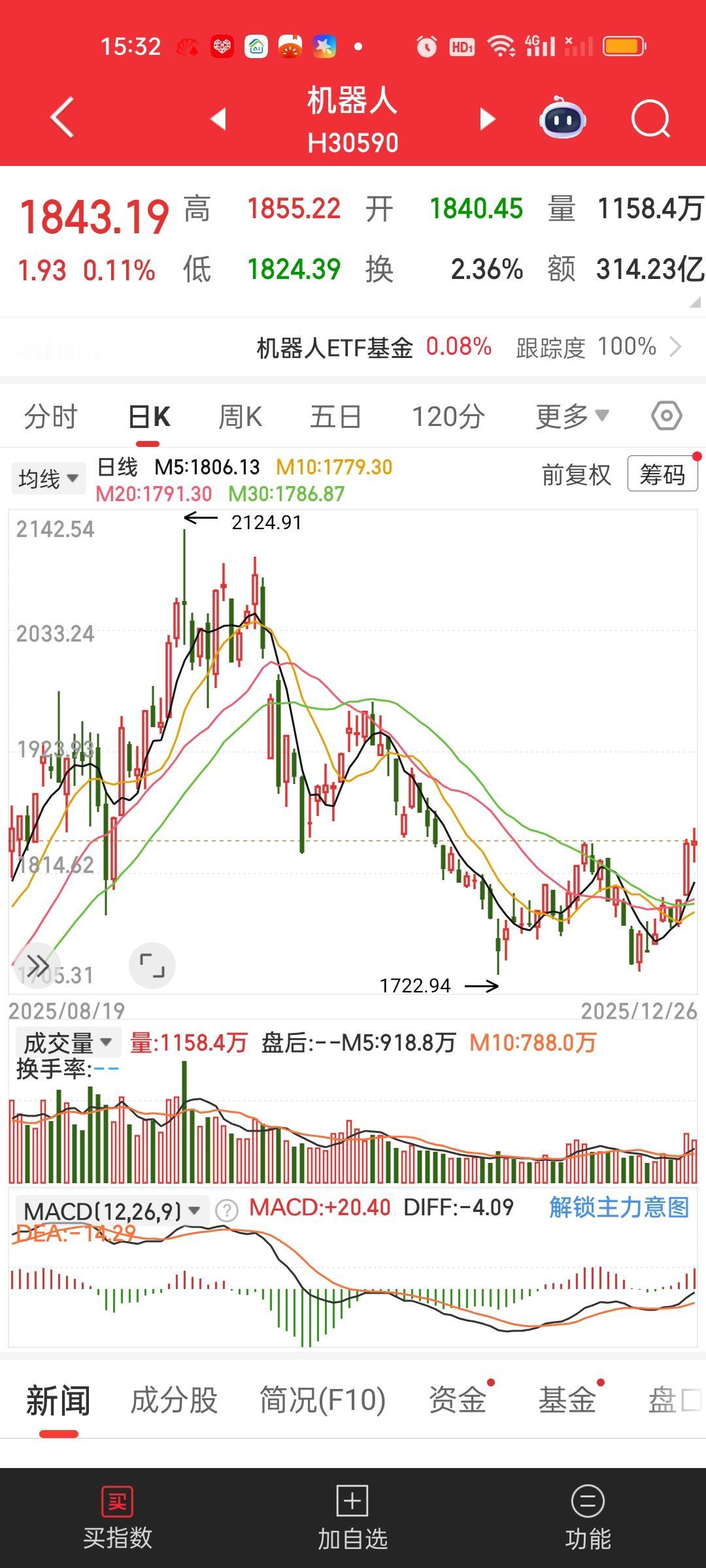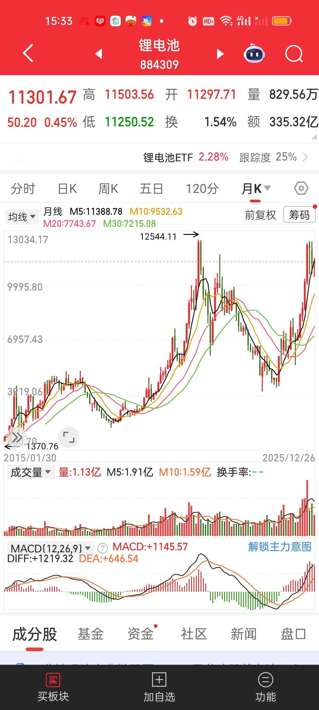 现在西方都在放假,资金都没有干活,所以恒科暂时没有起色很正常,但这个地方本身位置足够低,风险其实没有那么大,反倒是半导体今年迎来了暴涨,26年是否有行情值得商榷。机器人经过半年的调整,在2026年反而可以期待一下。新能源和光伏的走势很像,位置都还不高,反倒是锂电池已经涨到很高的位置了。