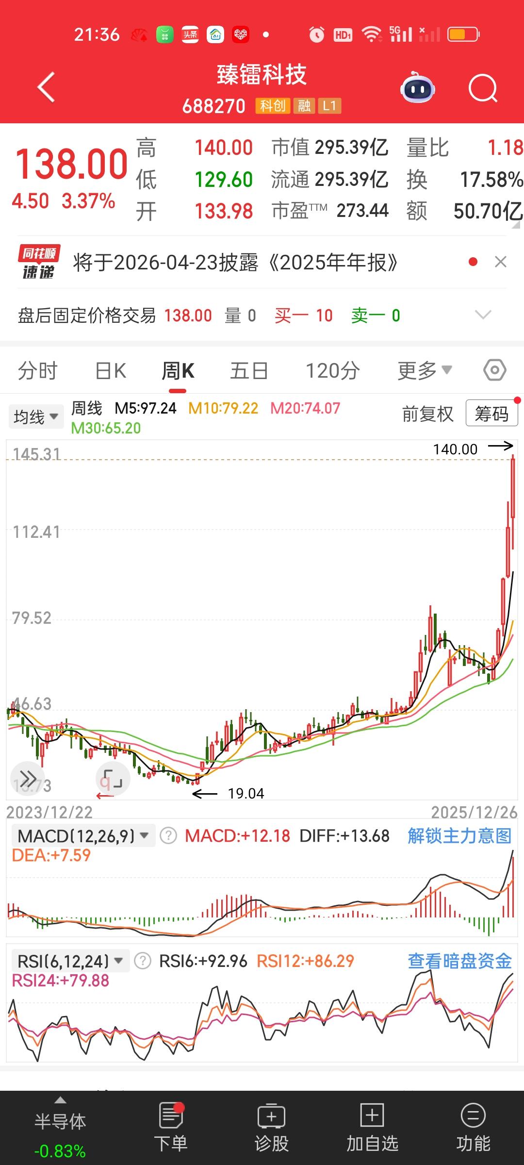 这个消息对于商业航天板块是绝对的利空啊!140/19.04=7.353,股价从低点上来已经涨了7.35倍,而且市盈率高达273.44倍。一旦开始下杀,股价可能会杀到两位数,更危险的是很有可能会引起连锁反应。