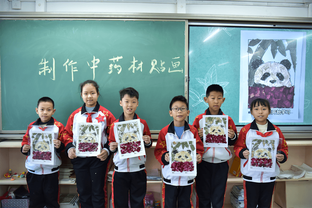 直播结束后,各班手工实操正式开启。在班主任老师和各班劳动小能手的带领下进行手工制作,辅导老师也穿梭于各个教室,随时提供帮助。当一幅幅精致的中药材贴画、一个个蕴含五行智慧的标本盒、一袋袋养生茶饮、一个个安神助眠的艾草枕在孩子们手中诞生,成就感洋溢在每一张笑脸上。