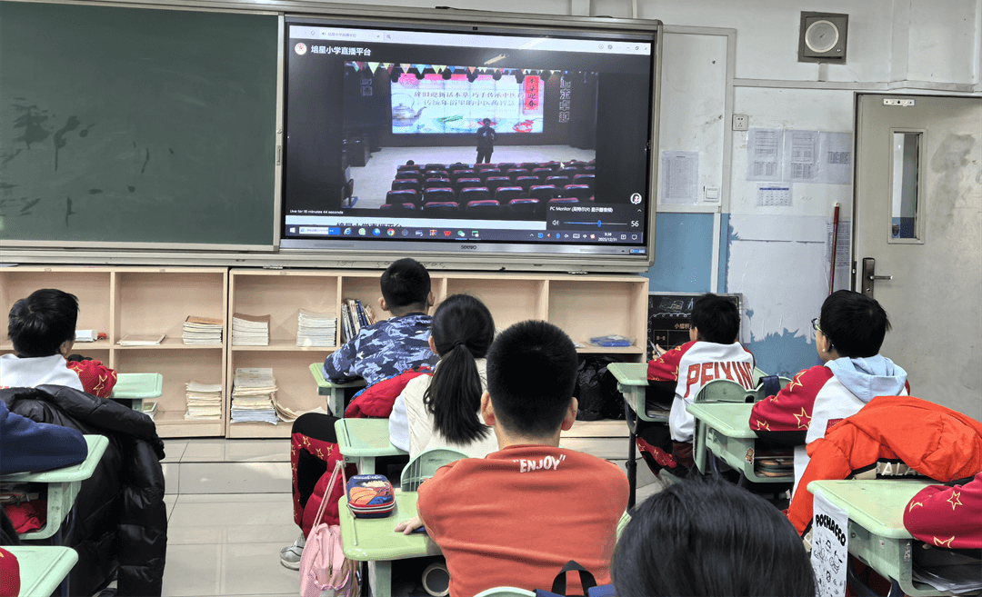 三至六年级所在的南校区,吴云锋老师以“传统年俗中的中医药智慧”为切入点,将“扫尘除旧”“饮屠苏酒”“食五辛盘”等年俗背后的中医“治未病”理念娓娓道来,让孩子们读懂新年“祛病迎新”的健康内核。随后的手工项目教学直播更是干货满满,中药材贴画的干花搭配技巧、五行中药材标本盒的文化内涵、养肝护肝茶的食材配比、薰衣草艾草枕的填充妙招,一一清晰呈现,安全注意事项也被反复强调。