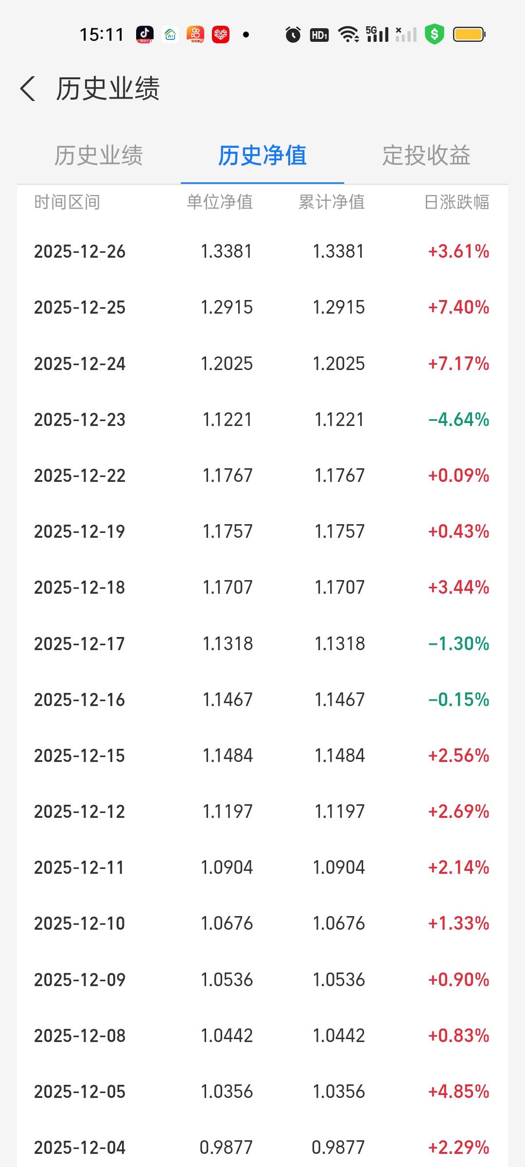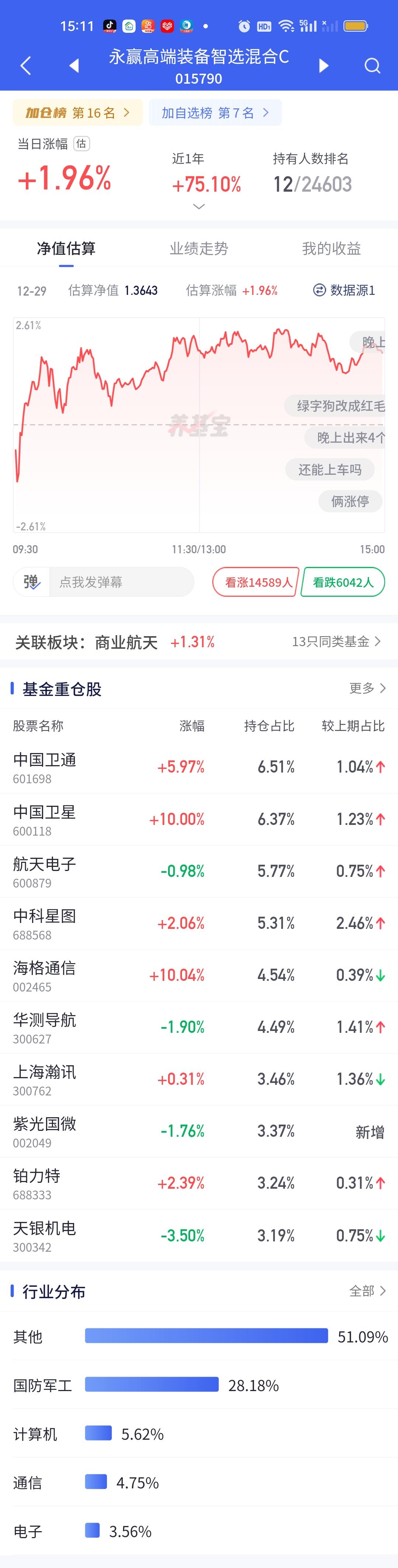 商业航天卖飞的感觉真的太难受了。我是12月23日大跌4.64%的时候买进的底仓,12月26日背着1.50%的手续费清仓的,可是今天12月29日商业航天又涨了2%啊。这种感觉好难受。踏空比卖飞要痛苦一万倍。明天是第五天,就算跌2%赎回也是挣的啊,因为2+1.5=3.5%,也能多挣1%啊。