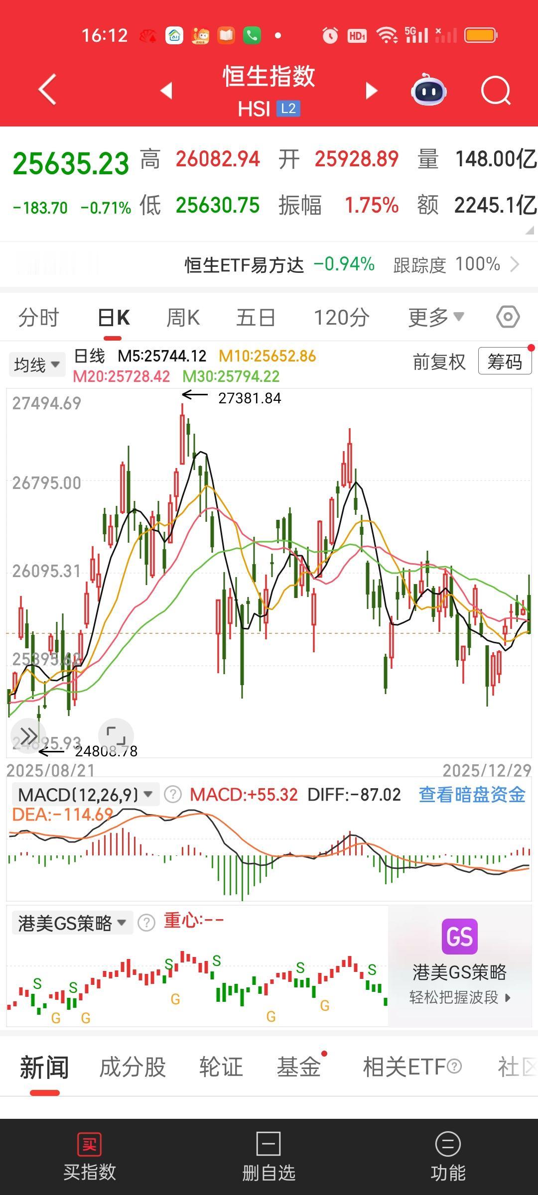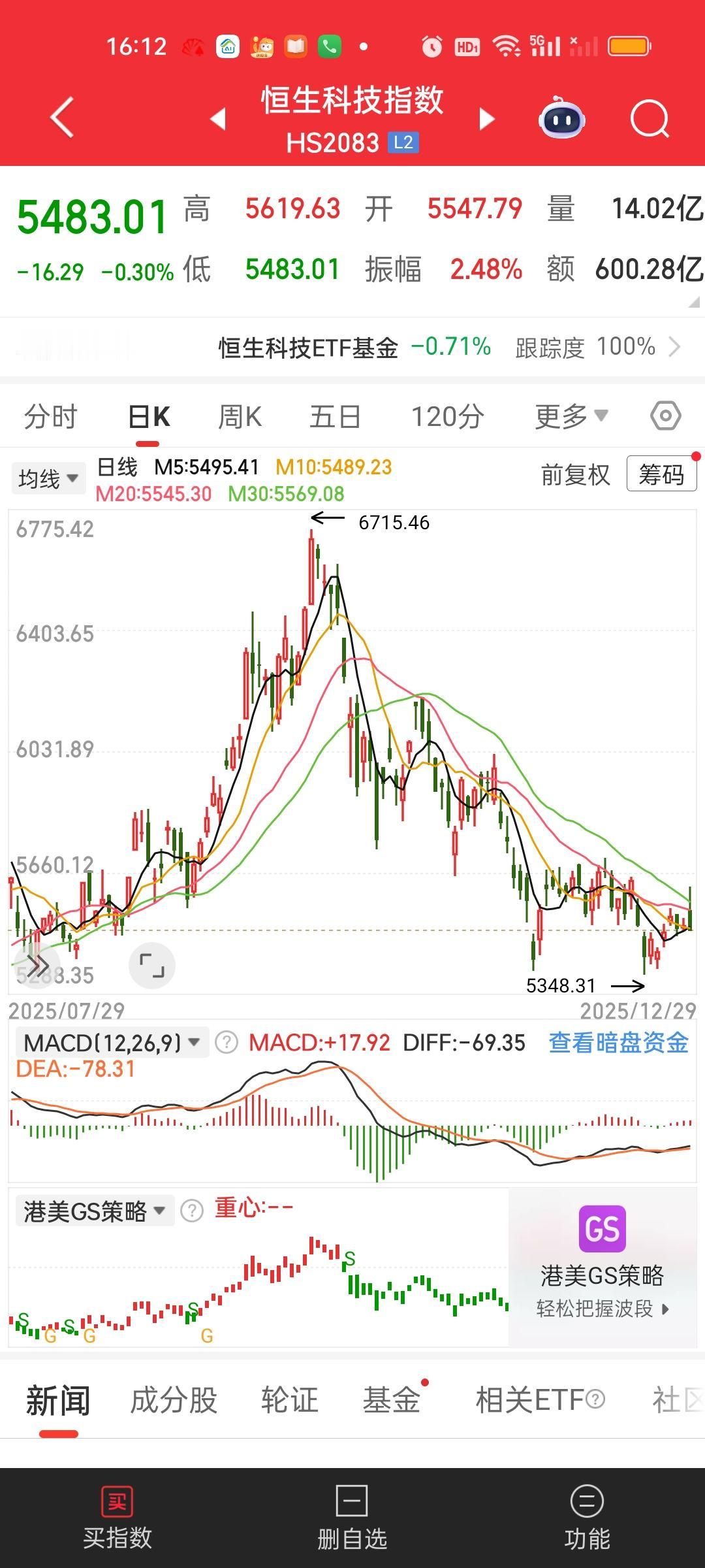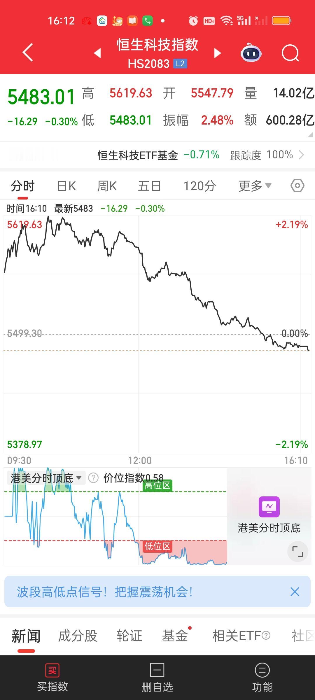 港股恒指和恒科今天是冲高回落的走势,收盘双双跌破了所有均线支撑,走势很弱。这么弱