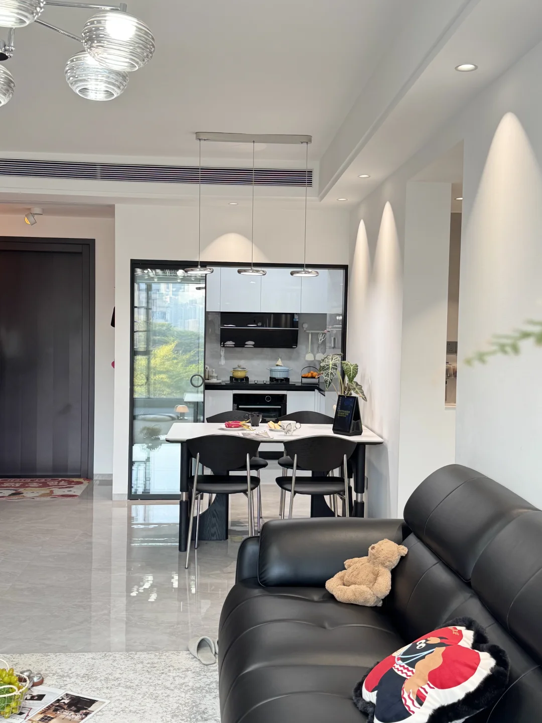 两人共同努力拥有了我们的小家 一家三口过上了三餐四季的小日子 毛胚房 建面79 套内63 三房(主卧 书房 儿童房) . 客厅和阳台打通, 简约显大 黑色沙发 地毯 还有咖啡绿植角☕️ 餐厅1.4的长餐桌 ,还有一组定制柜 没有公婆父母参与,一家三口住在梦中情窝☺️ 过着理想生活 自由自在真的太爽啦~~ 小户型显大 居住趋势 装修新手村 客厅装修灵感库 小户型 厨房 家的养成计划 万物皆可审美积累 审美积累 小户型 改造 布置我的小家 人生第一次 古法过冬 精装房 超心动的家   小户型显大  家居歹物通缉令 M豆入口雪趣就有  设计周 干杯设计 与好设计交朋友