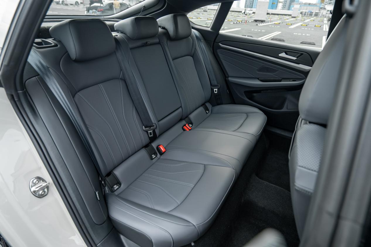 车辆后排,作为一辆轿跑它的后排空间其实还算不错。虽然大家对于轿跑车型的后排空间其实没有太多的要求,一般都是能应急就行。但是这款车就算经常坐人的话,乘客也不会感到非常局促的,整体的腿部空间和头部空间都比较充裕,成年男性坐在后座也并不局促,照比许多后排几乎没有腿部空间的轿跑车型来说体验还是非常不错的。