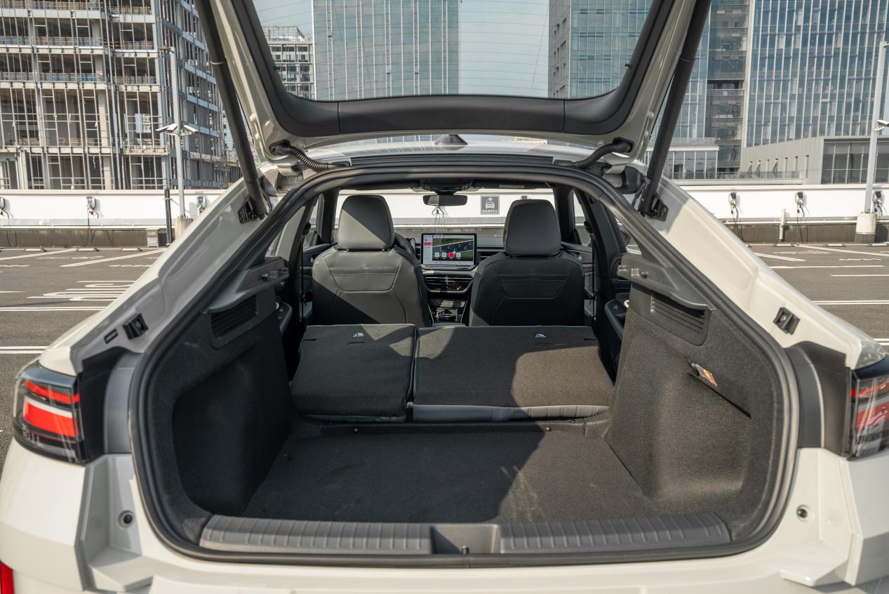 来到后面,车尾使用了贯穿式尾灯与车头的设计相呼应,并以及发光车标让整车的时尚感有所增加,适当的鸭尾设计也让凌渡L GTS的运动感进一步的增强。并且关于车尾我有两个想讲的点:一、是这个掀背的车尾门,掀背尾门是非常适合轿跑车型的,因为这种设计不仅能够保证整车造型的美观程度,还可以保证后备箱的储物能力。