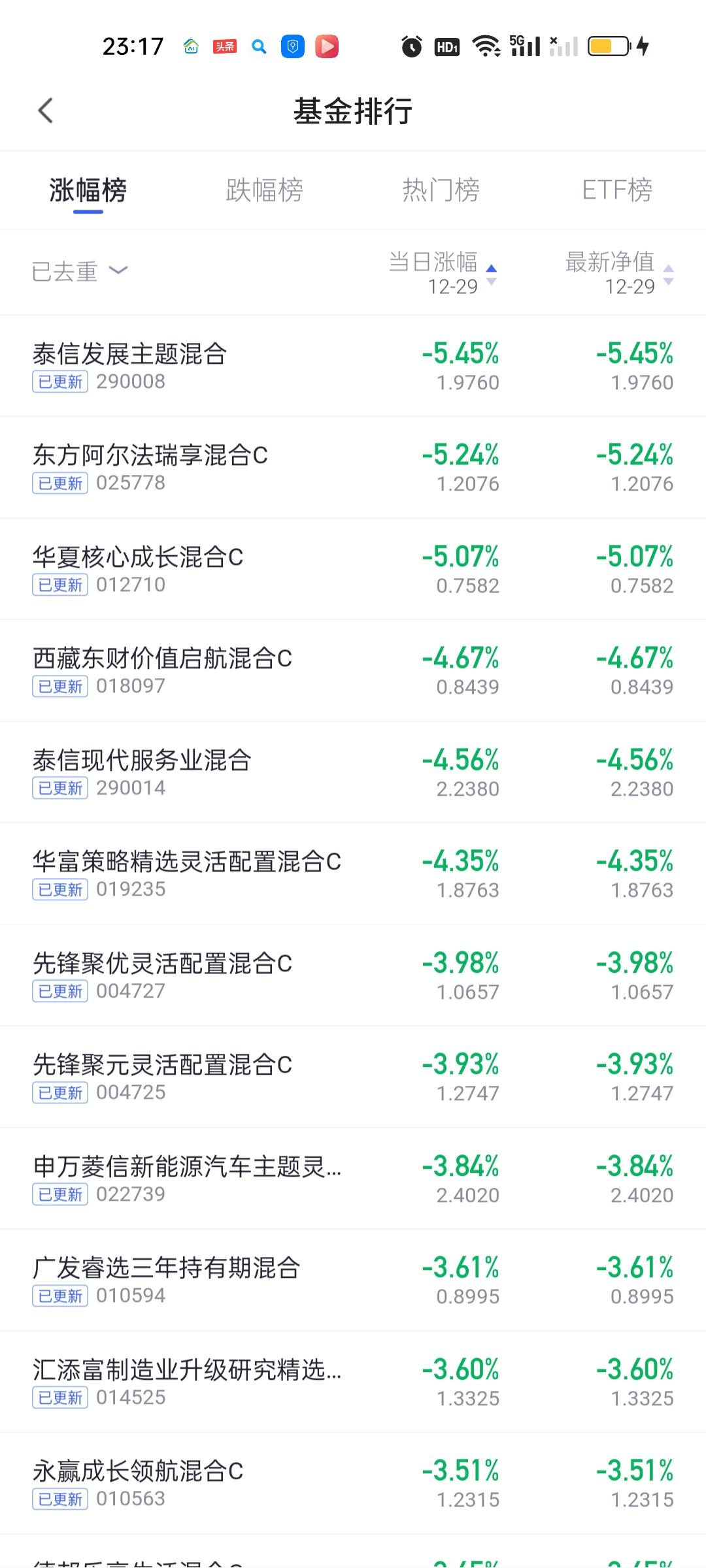 今天机器人涨的有多爽,锂矿跌的就有多惨,绝对的冰火两重天。机器人板块的方正富邦远见成长,财通资管先进制造,前海开源嘉鑫涨幅都在5%以上,锂矿板块的泰信发展主题,东方阿尔法瑞享,华夏核心成长跌幅都在5%以上。 此外锂矿的西藏东财价值启航,泰信现代服务业,华富策略精选,先锋聚优,先锋聚元,申万菱信新能源汽车,汇添富制造升级,永赢成长领航跌幅都不小。