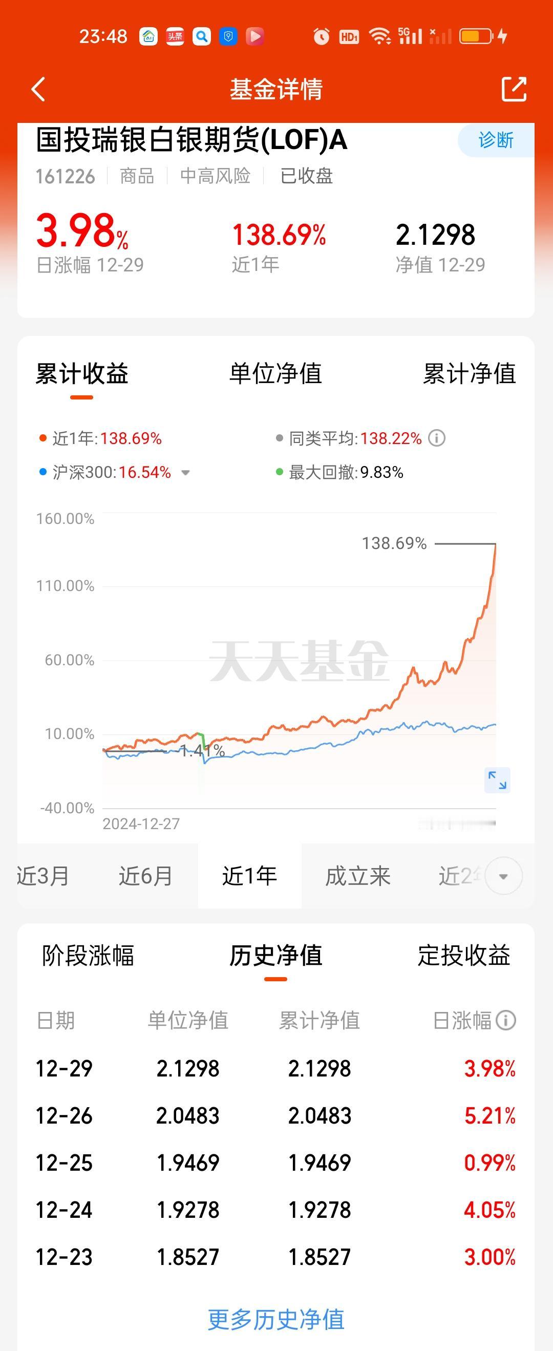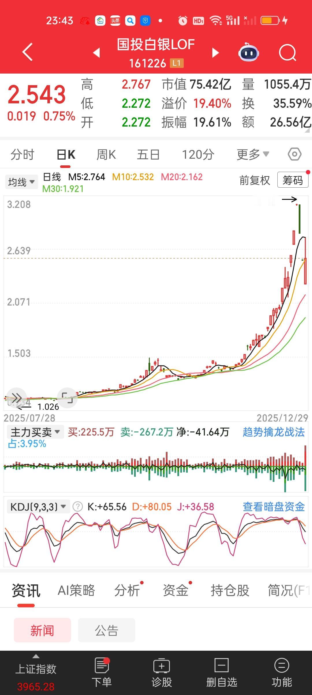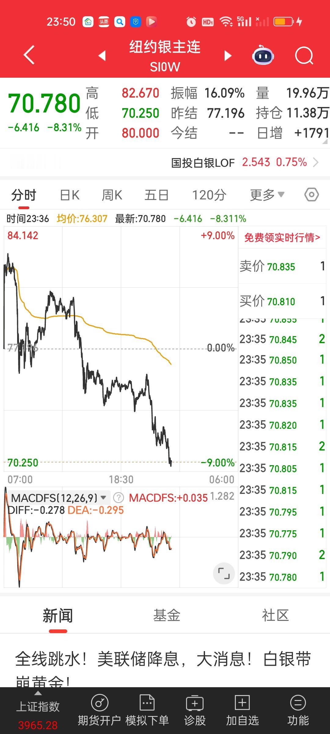 今天晚上黄金和白银遇到史诗级的暴力下杀,其中伦敦银现暴跌近14%。沪银跌幅也在7.2%以上,黄金也是大跌,跌幅也都在4.50%以上。按照现在的架势,国投白银LOF今天收盘虽然还有19.40%的溢价,但如果明天开盘就跌停,溢价就将不复存在。